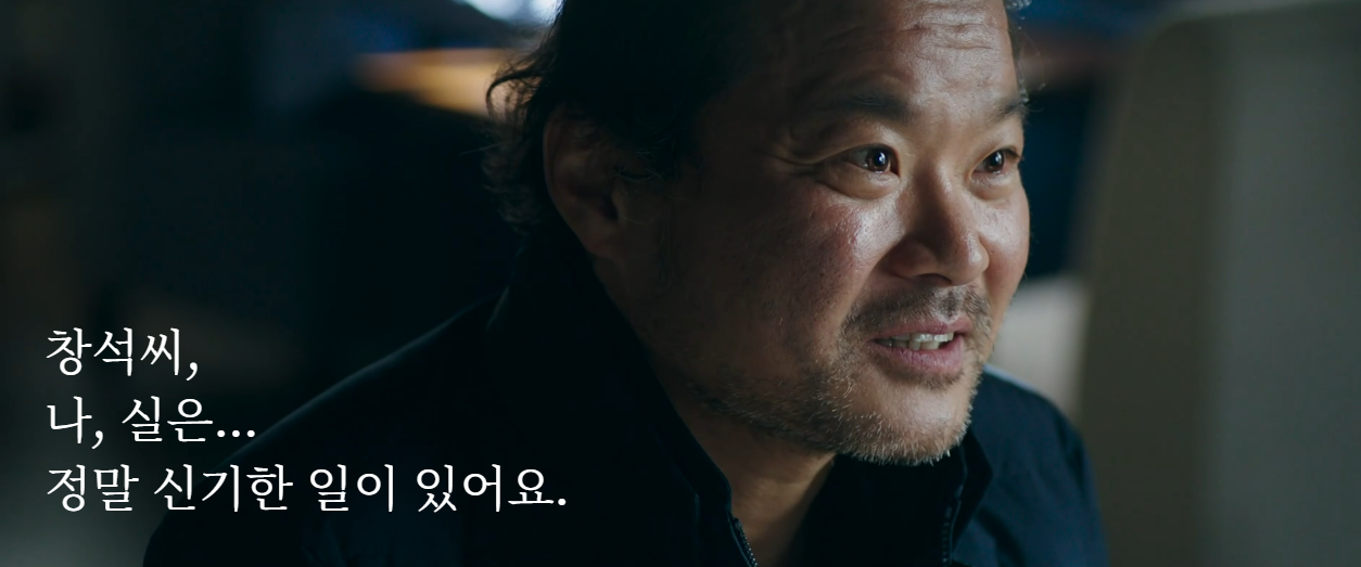 "알아요. 본거야. 모든 이야기가 창석 본인 얘기잖아요. 창석과 창석 주변의 이야기를 창석 주변의 시선과 관점으로 쓰여진 이야기? 난 그렇게 봤어요, 그 영화"