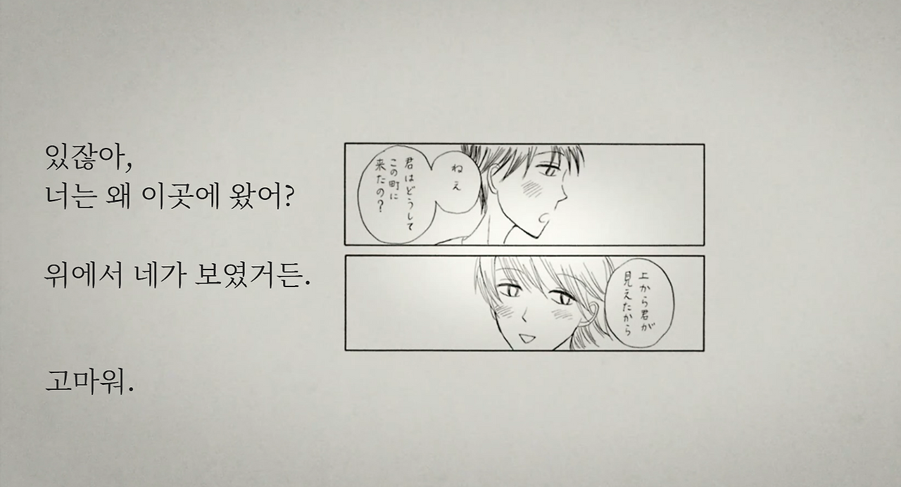 좋아하는 장면_ "우라라의 달리는 장면, 유키의 읽는 장면"