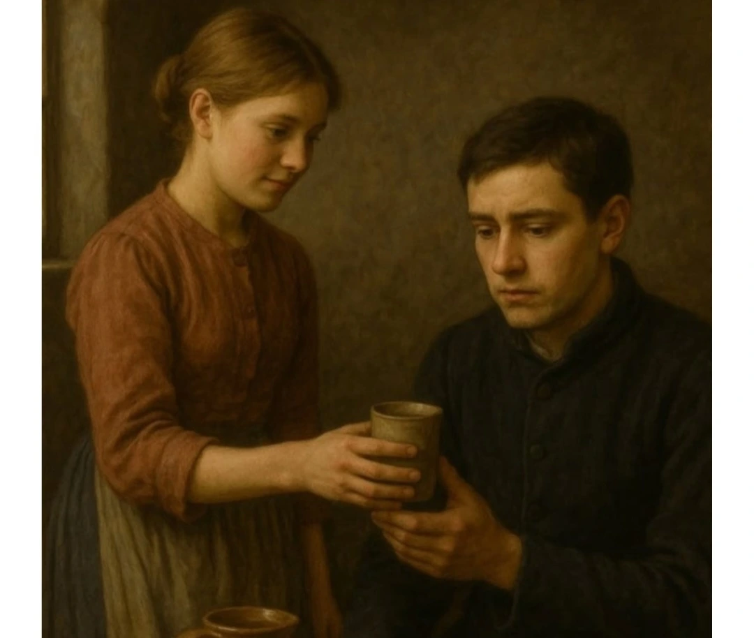 그녀가 건넨 과즙 잔 앞에서