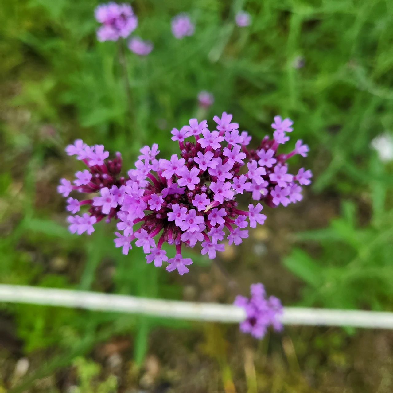 가느다란 줄기에 여러 개의 꽃잎이 한 송이 꽃으로, 다시 한 송이 꽃들이 모여 하나의 꽃으로 피어난 꽃이 있습니다. 자세히 들여다보면 작은 꽃들이 한줄기에 매달려 있어서 꽃다발을 보고 있는 것 같습니다. 멀리서도 알아볼 만큼 무리 지어 피어있는 보라색 꽃들은 라일락버베나라는 꽃이었습니다.