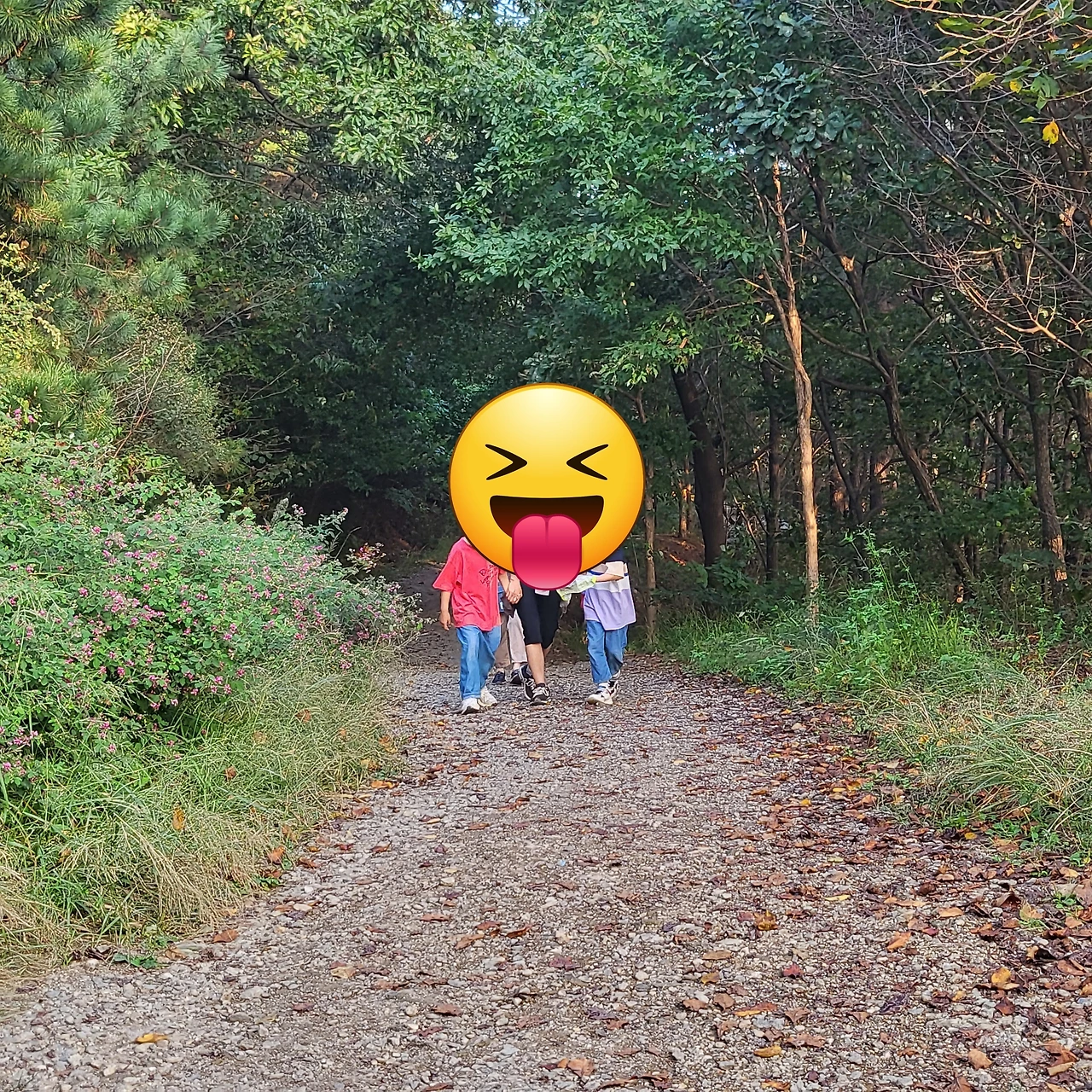 지나가던 등산객이 아이들을 보며 방긋 웃어줍니다.