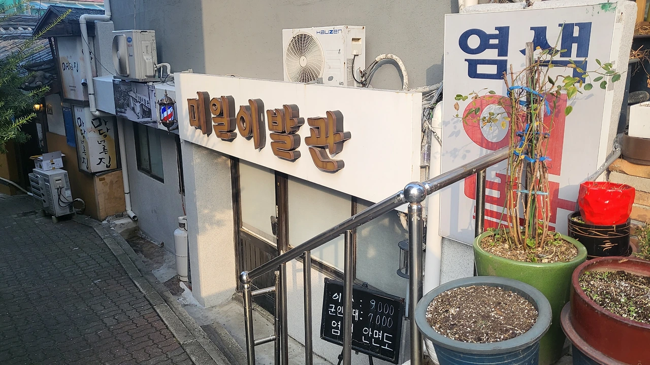 낙산공원으로 들어가는 길은 내가 생각했던 쌍방향의 도로가 아니었다. 그야말로 옛 골목길, 차하나 간신히 지나다닐 수 있는 풍경을 고스란히 담고 있는, 시간이 쉬었다 가는, 그림 같은 골목길이었다. 혜화동의 골목길은 시간의 감성을 그대로 품은 체 모든 것이 정지되어 있는 듯했다. 그 골목 안을 걷는 동안 우리는 오래전 시간으로 되돌아가 있었다. 금방이라도 까까머리에 코흘리개 동네아이들이 뛰어나올 것만 같았다. 어디선가 연탄재가 날아다니고 전봇대에 까만 고무줄을 연결해서 고무줄놀이를 하는 동네누나들도 보이는 듯했다. 오래전 없어진 삼색등이 돌아가는 이발관과 미닫이 문에 붙어있는 군입대자 7000원 글자에 배어있는 이발관 사장님의 정감이 따뜻하게 피어나고 있었다. 그 옆으로 촘촘히 잇닿아 있는 기와지붕들은 윗집과 아랫집의 지붕으로 연결되어 기와지붕들만 이어진 하나의 풍경이 되어 서울 혜화동을 보여주고 있었다. 골목 안은 또 다른 골목으로 이어져 있었고 낙산 능선을 따라 이어진 기와집들 사이로 수많은 계단들은 마치 천국의 계단처럼 보였다.