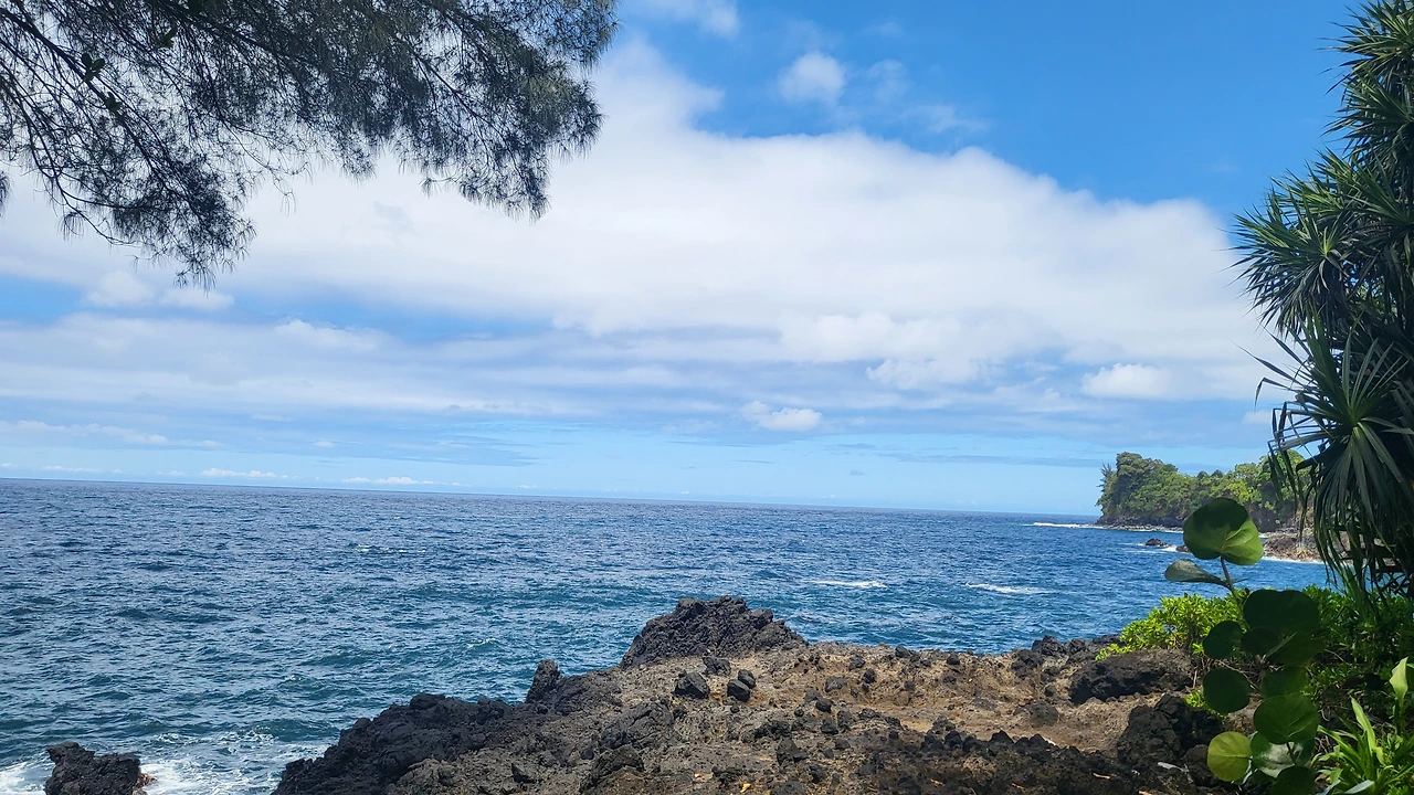 빅아일랜드 동쪽 끝으로 달리는 차 안에서 바라본 하와이는 끝이 보이지 않는 대륙이다. 코나 공항이 있는 서부 쪽에는 검은 용암 덩어리가 그대로 풍경을 만들어 내고 있다. 먼 곳 구릉 같은 산들은 하얀 구름들이 여러 모양으로 변해가고 있었다. 이렇게 광활할 수도 있구나 감탄사가 절로 나왔다. 우리가 달리는 중앙 도로는 양방향 일직선으로 시원하게 뚫려 있었다. 양방향으로 달리는 대부분의 차들은 픽업트럭들 이였는데 도로보다 커 보였다. 서부 쪽에서 동부로 접어들수록 나무들이 많아지고 열대우림으로 풍경이 바뀌어 깄다.
