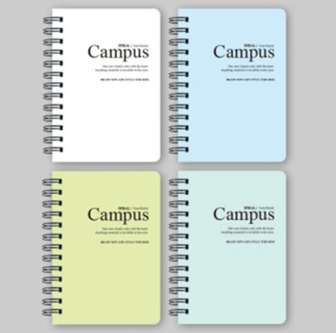 처음에는 이렇게 스프링노트가 예쁘고 이유 없이 끌려서 나도 모르게 구매를 했다 치면, 어느 순간 나의 스프링노트 구매 목록을 보면 A6 사이즈 정확히는 105*148mm 캠퍼스스프링 노트만 구매를 한다. 손바닥보다 조금 큰 사이즈여서 가방에 넣고 다니며 눈에 보이는 것과 귀에 닿은 것과 촉감과 그날의 바람소리와 햇볕의 강도를 끄적인다. 그런 것들 보다 더 많이 적게 되는 게 있는데 지금은 스프링노트의 존재 이유는 책을 읽다가 마음에 와닿은 문장들을 필사하는 데 있다. 큼지막한 글씨체로 한 장에 몇 줄 정도로 적어 내려가다 보면 어느새 노트 한 권이 꽉 채워진다. 그렇게 필사노트로 때로는 작가노트로 사용한 지가 십 년 정도 돼 간다. 책꽂이 한 칸은 이렇게 적어나간 스프링노트가 행사장에 꽂혀있는 노트처럼 가지런히 줄맞쳐 꽂혀있다. 나는 성당을 가거나 지인분을 만나러 가거나 회사를 갈 때도 가방 안에 꼭 들어가야 되는 게 있는데 소설책 두세 권과 지금 적고 있는 필사노트와 예전 언제인지 모를 필사노트를 꺼내 가방 안에 넣고 나간다.