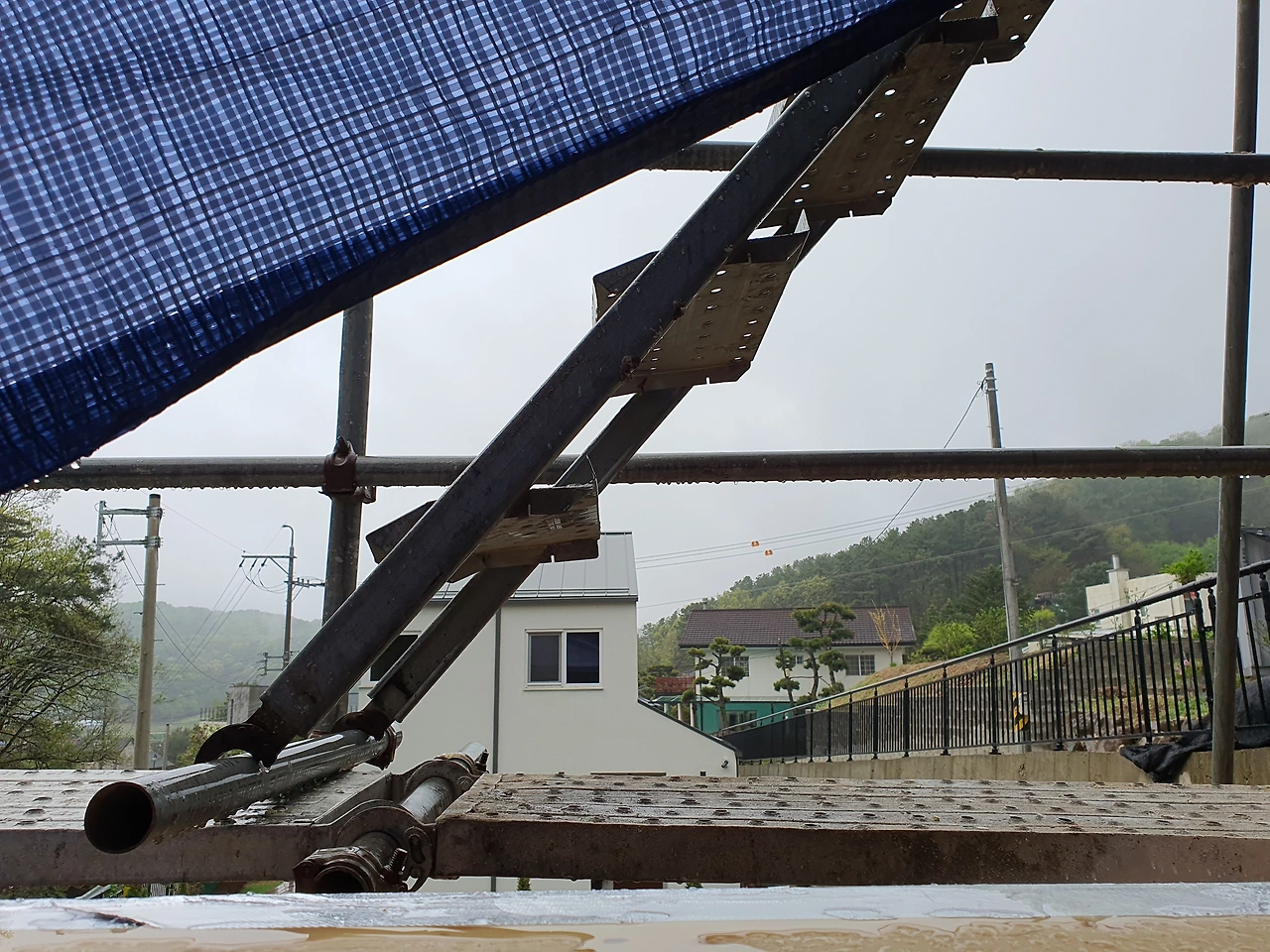 양평에 도착했을때는 집의 형체가 잡혀있었다. 목수 학교를 갓 수료한 나의 눈으로 보았을 땐 지붕 서까래와 합판, 외부 투습방습지 작업 정도 남은 것으로 보였다. 바쁜 와중 팀장님은 장갑을 벗고 내게 손을 건네셨다. 오히려 내가 인사를 흘려한 정도다. 오후 한시가 조금 넘어 도착한지라 숙소로 가 짐을 풀고 숨을 고를 줄 알았건만 급하게 작업화를 신었다. 학교에서 목조 주택이 지어지는 단순한 과정을 오개월간 배웠으나 눈에 톱밥이 낀듯 내가 해야할 일들이 선뜻 눈에 띄지 않았다. 일단 빗자루를 쥐었다. 청소는 마법이다. 현장은 어디든 정리정돈을 중시하며, 나또한 청소라도 하고있는것이 마음 편하다. 몰두중인 누군가에게 무엇을 하면 되는지 묻는 순간 나는 불청객이 된다. 그들의 친절함 정도가 관여하는 것이 아니다. 내가 물음을 다짐했을 때부터, 각기 일을 하고 있는 사람 중 논리가 뚜렷하지 않지만 접근 해야겠다 마음 먹은 사람에게 다가갈때, 그의 공구 사용이 멈추고 진동과 소음에 의해 나의 말이 힘없이 떨어지지 않을 순간을 파고 들 때, 그 사람의 입장에서 우물거림일 뿐인 나의 문장을 되물을 때, 되묻는 순간 위축이 되어 제대로된 단어를 선택치 못하고 말을 내뱉는 과정은 신이라고는 생각도 해본적 없는 내가 친구네 작은 교회 수련회에 참가하는 기분이다. 심지어 나를 초대하고자 한 인물은 친구와 어쩌면 예수님 뿐이다. 예수님마저 친구와 기도속에서 대화했을테다. 어찌저찌 태양은 낮은 산 아래로 모습을 감추기 시작했다. 긴장해 덤벙대고 어쩔줄 몰라 했지만 내가 한 일들은 주변정리로 함축된다. 게다가 비소식에 내일은 휴무다. 방수포를 두르고 숙소로 왔다. 팀장님과 나만이 남고 팀원들은 고향을 향했다. 내가 부산에서 올라온지 여섯시간 채 안됐을 때였다.