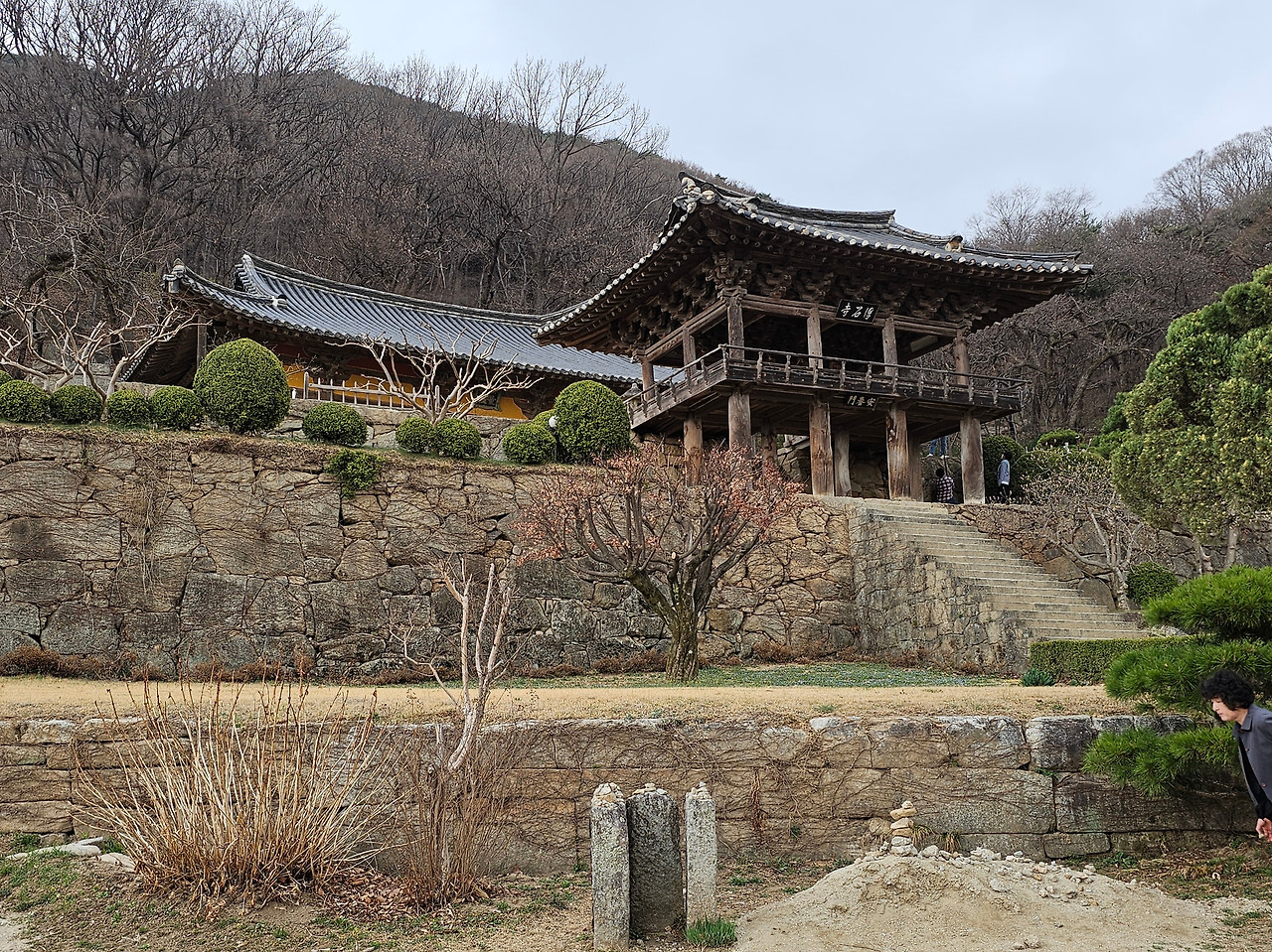 그리고는 늦가을 소백산 찬 바람에 정신을 차리고, 감동의 여운을 지닌 채 안양루를 뚫은 돌계단을 지나 무량수전 앞마당에 올랐다.