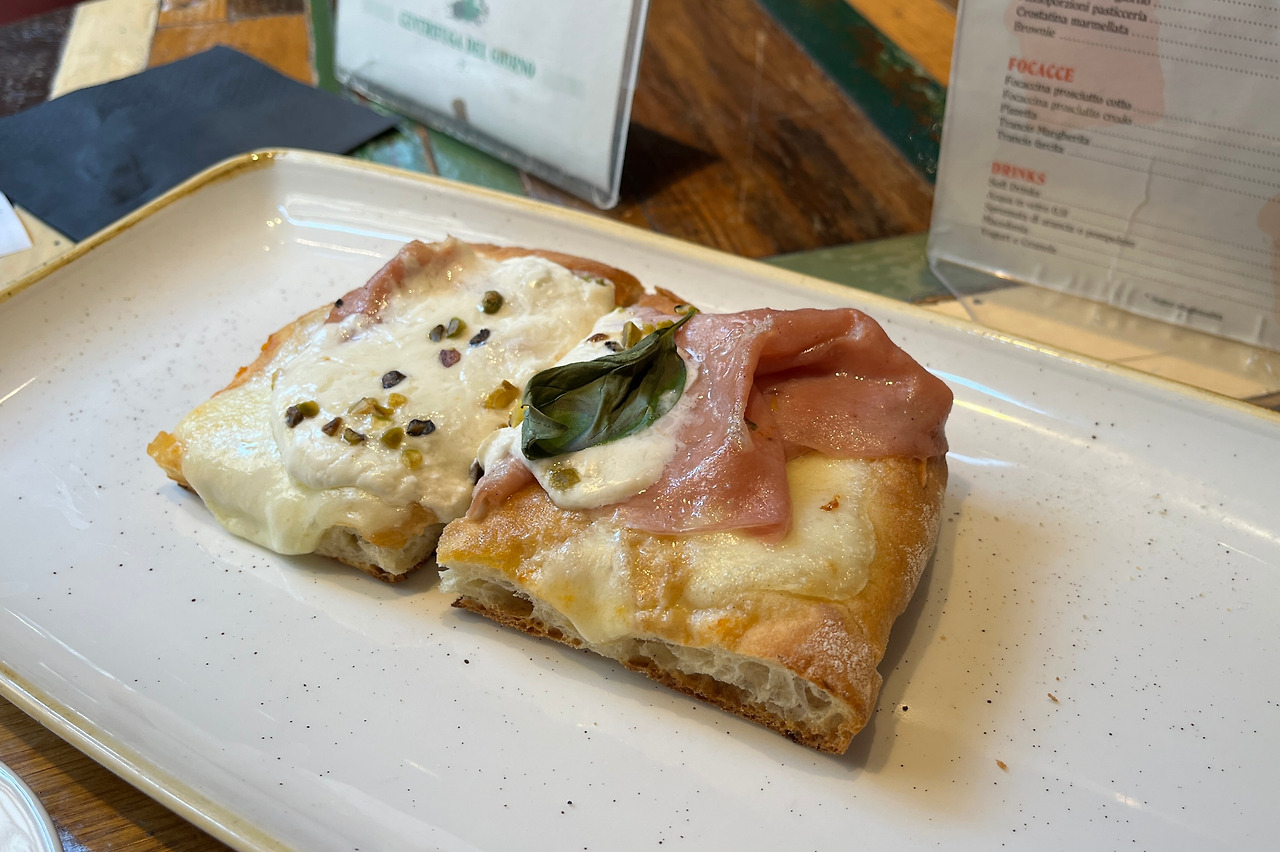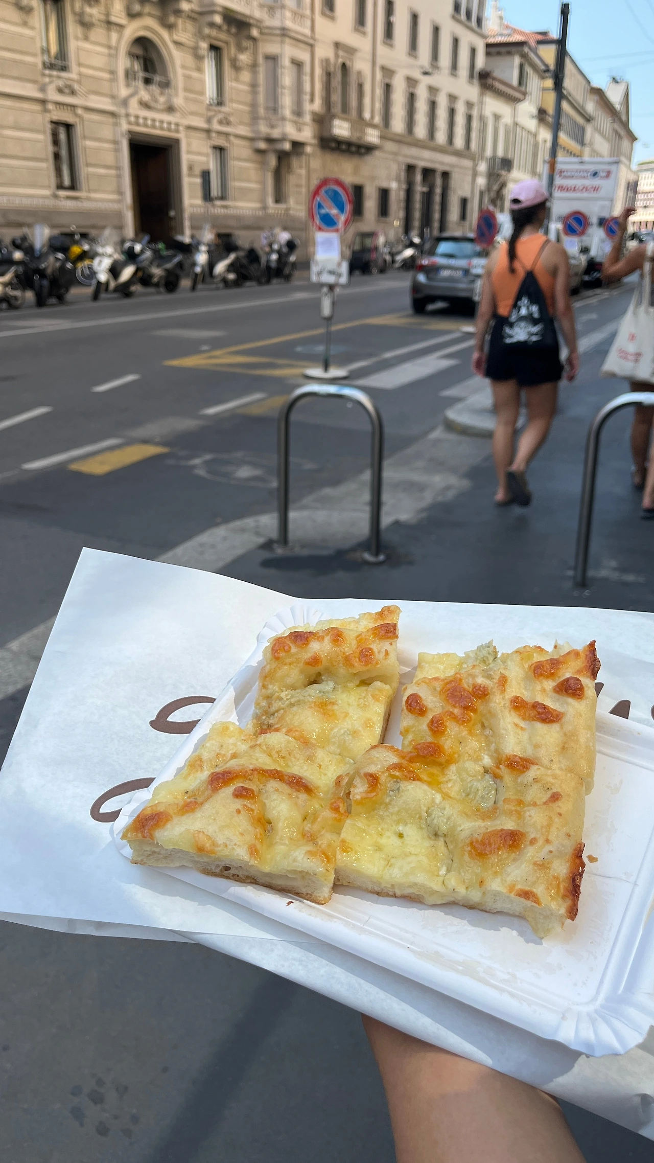 포카치아의 충격이 채 가시기 전에 무언가를 더 먹어보려 두런거린다. 포카치아 피자를 판매하는 다른 가게를 찾았다. 이번엔 고르곤졸라로 선택해 본다. 치즈 풍미가 괜찮고 뿌려낸 올리브오일의 향도 좋다. 도우도 적당히 질깃한 게 나쁘지 않지만 첫 그것의 감동을 이겨내지 못한다.