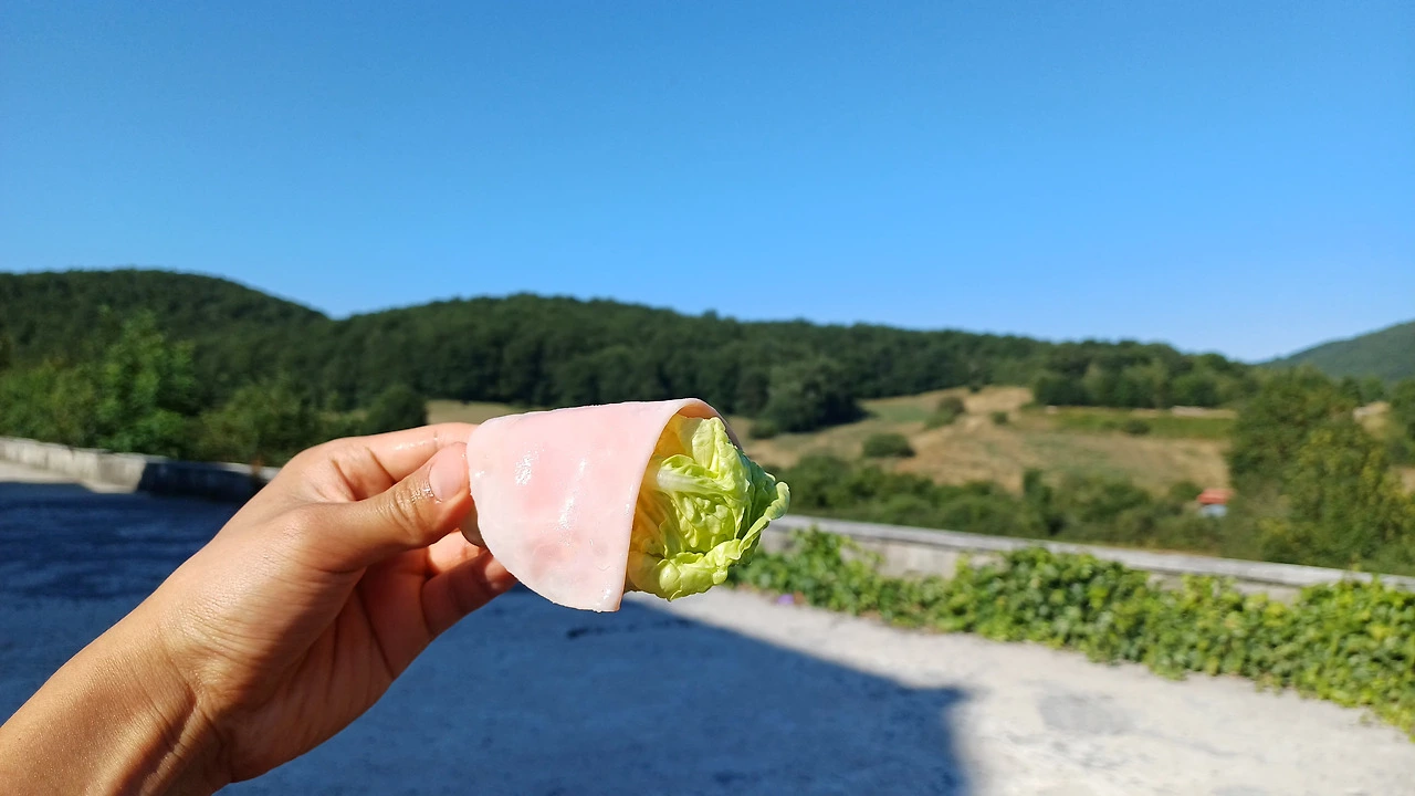 다른 마을에 들어서서 충분하지 못했던 아침식사를 덧대고자 식료품점에 들렀다. 햄과 레터스, 요거트, 복숭아와 납작 복숭아, 귤을 사들었다. 유럽을 여행하며 다양한 종류의 햄을 많이 먹었다. 어느 식료품점에 가도 다양한 종류의 생햄을 저렴한 가격에 판매한다. 빵이나 야채와 함께 구매해 간단한 식사를 만들기에 간편한 데다 한국에 없는 종류의 햄들도 많아 재미가 좋다.
