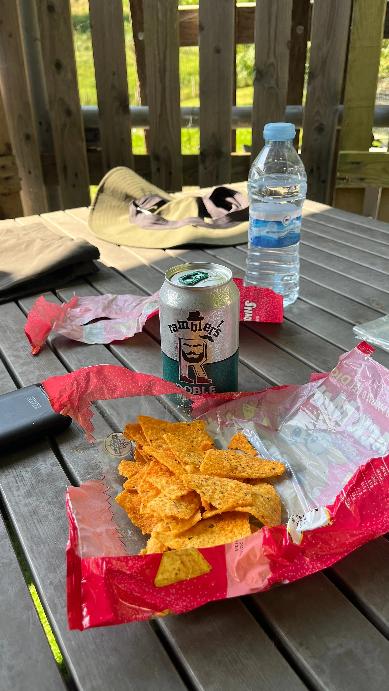 1시간 남짓 걸어서 오늘 머물 알베르게에 도착했다. 고작 11시였다. 야외 테이블에 앉은 직원에게 물으니 3시부터 들어갈 수 있다고 한다. 뒤로 가면 앉을 공간이 있다며 안내해 준다. 오늘 유독 쨍한 볕 아래 빛나는 초록 잎들을 가득 눈에 담을 수 있는 공간이었다. 못다 마른 빨래를 널어내고 키보드를 펴들고 자리를 잡는다. 어젯밤 다 마시지 못한 맥주 한 캔을 나초와 곁들인다.