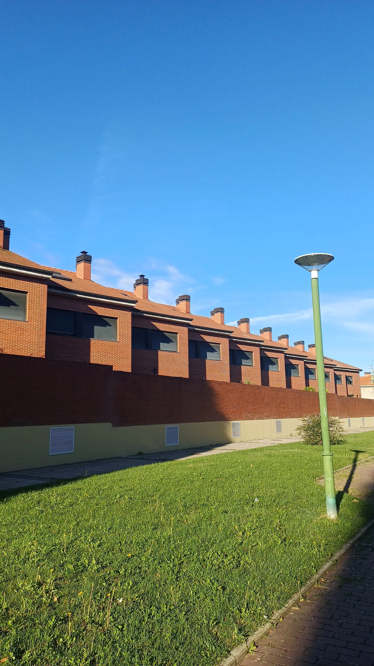 길을 걸으며 똑같이 생긴 건물이 타운하우스처럼 줄지어 있기에 사진을 남겼다. 스페인에서 유럽에서 지금까지는 많이 보지 못한 무엇이었다. 한국의 타운하우스가 떠올랐다. 새파랗게 푸른 하늘과 벽돌색과 잔디의 푸르름이 한눈에 담길 때 아름다웠다.