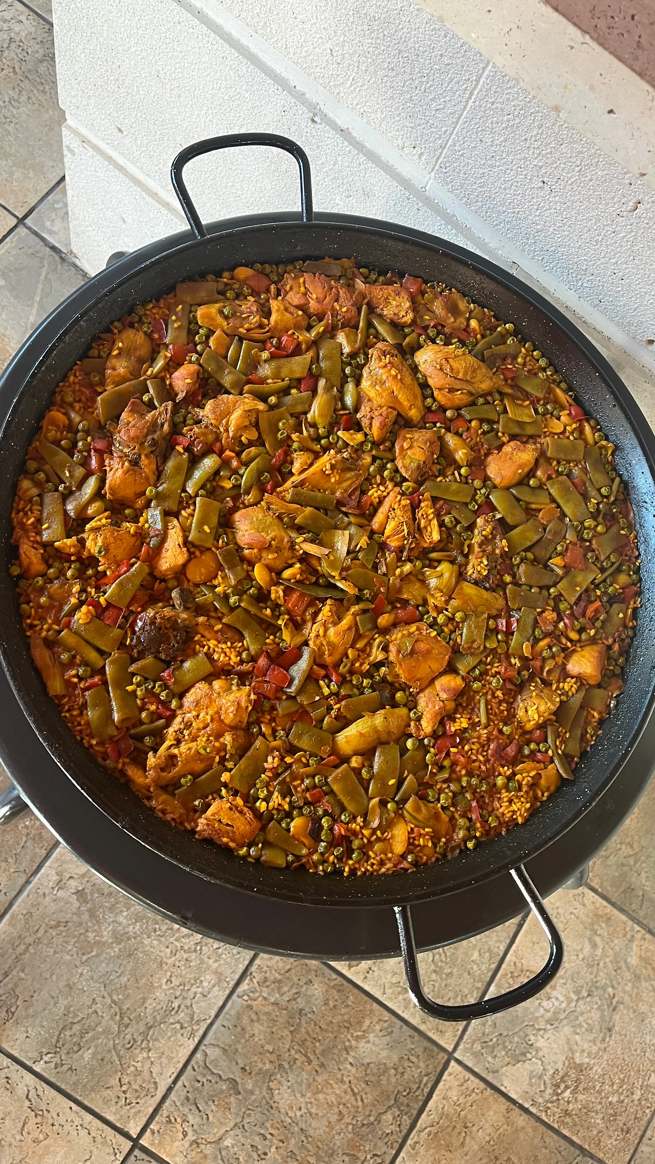 저녁식사는 알베르게에서 먹기로 한다. 이 알베르게를 선택한 이유다. 2시간 전부터 사장님이 거대한 화구에 거대한 팬을 두고 요리하시던 그것. 빠에야다. 즉석식품으로 나온 빠에야를 먹어보고서 충분히 맛있기에 제대로 만든 빠에야를 먹어보고 싶었다.