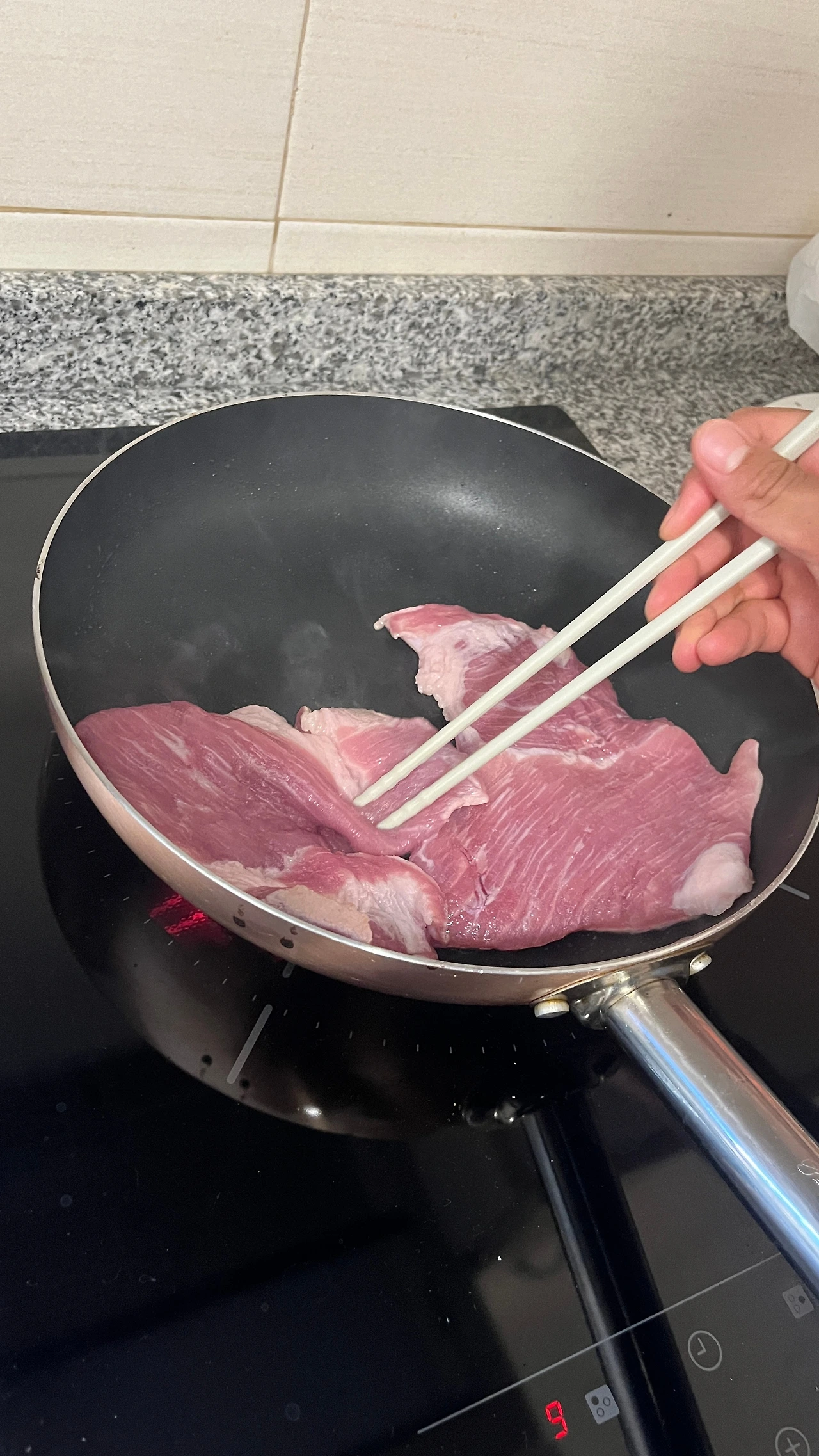 오늘의 숙소는 완벽하다. 인당 5유로에 둘이서 방을 사용한다. 주방시설은 완벽하게 갖추어져 있고 숙소 내 시설은 대부분 새것에 가깝다. 세탁기도 무료로 사용할 수 있는 덕에 순례길 중 처음으로 세탁기로 옷을 세탁했다. 어제 미리 사둔 고기를, 멀리서부터 등에 소중하게 메고 왔다. 어제 마트를 구경하다 항정살이 충격적으로 저렴하기에 얼른 골라왔다. 한국의 그것과 컷팅방식은 다르지만 육색이 좋았다.