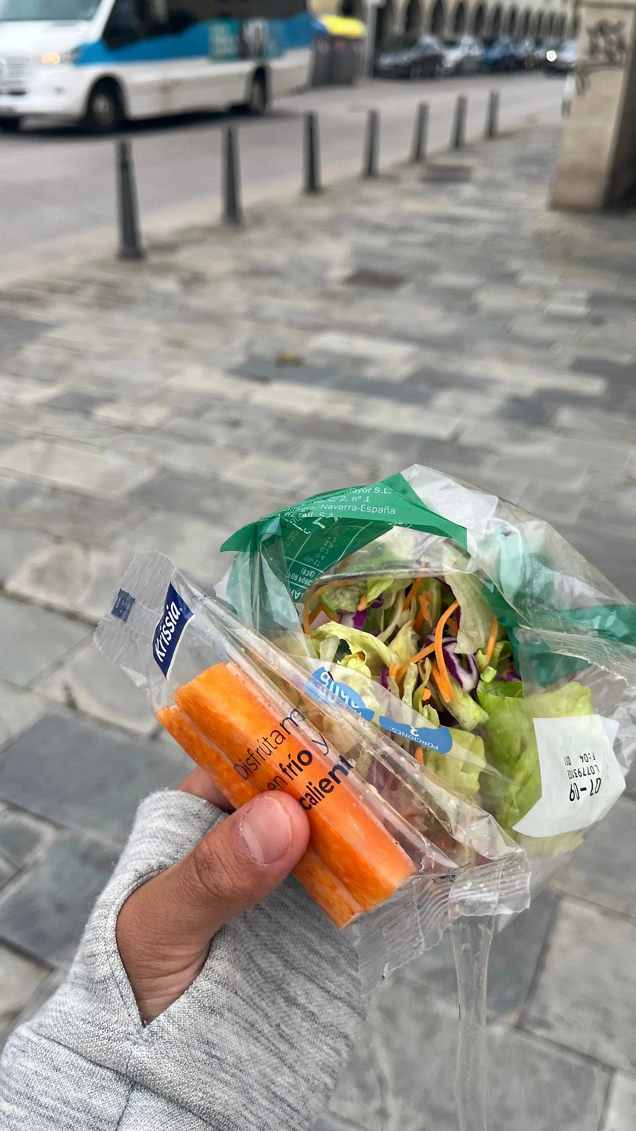 어김없이 나의 포카칩, 씻어 포장된 채소를 꺼내 들었다. 오늘은 크래미 같은 게살도 함께했다.
