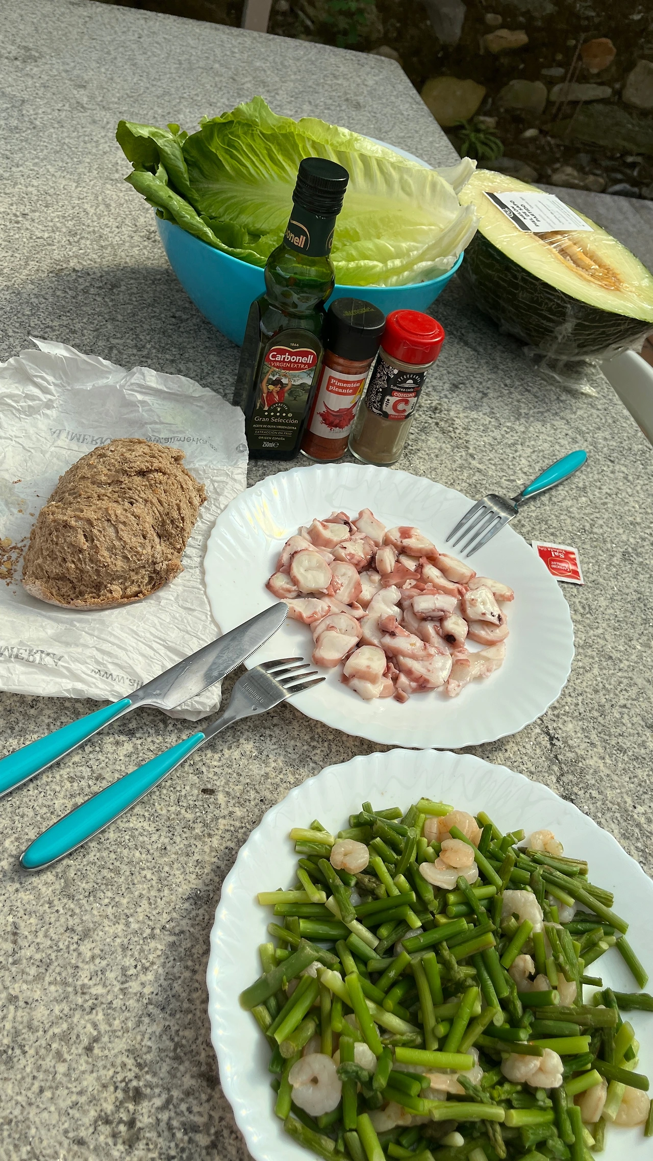 빠에야도 물이 꽤 생기긴 했지만 가장 맛있었다. 먹물빠에야였는데 특별한 맛이나 향이 있지는 않았다. 누나와 꽤 고심한 끝에 사들고 온 멜론을 다른 순례자들과 나누어먹었다. 큰 과일을 사면서도 나누어먹으면 되지 하며 살 수 있어서 좋았다.