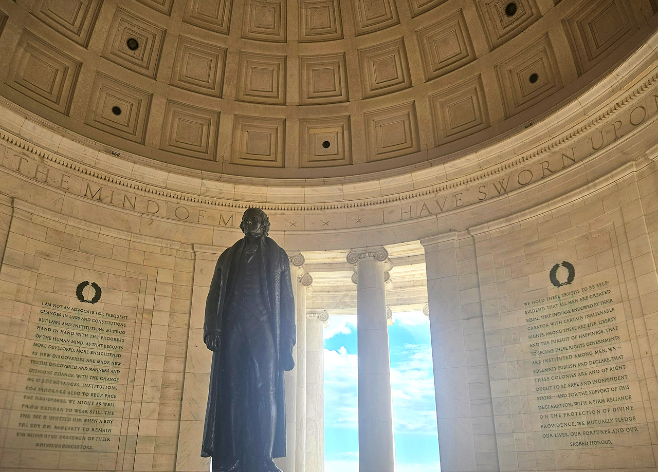 토머스 제퍼슨 메모리얼에서는 5분 남짓 빠르게 사진을 찍고 휙 둘러본 게 전부였다. 그런데 나중에 벽에 새겨진 글들을 정리하며 읽어보니, 미리 알고 갔더라면 훨씬 많은 생각을 할 수 있었을 것 같아 아쉬웠다.