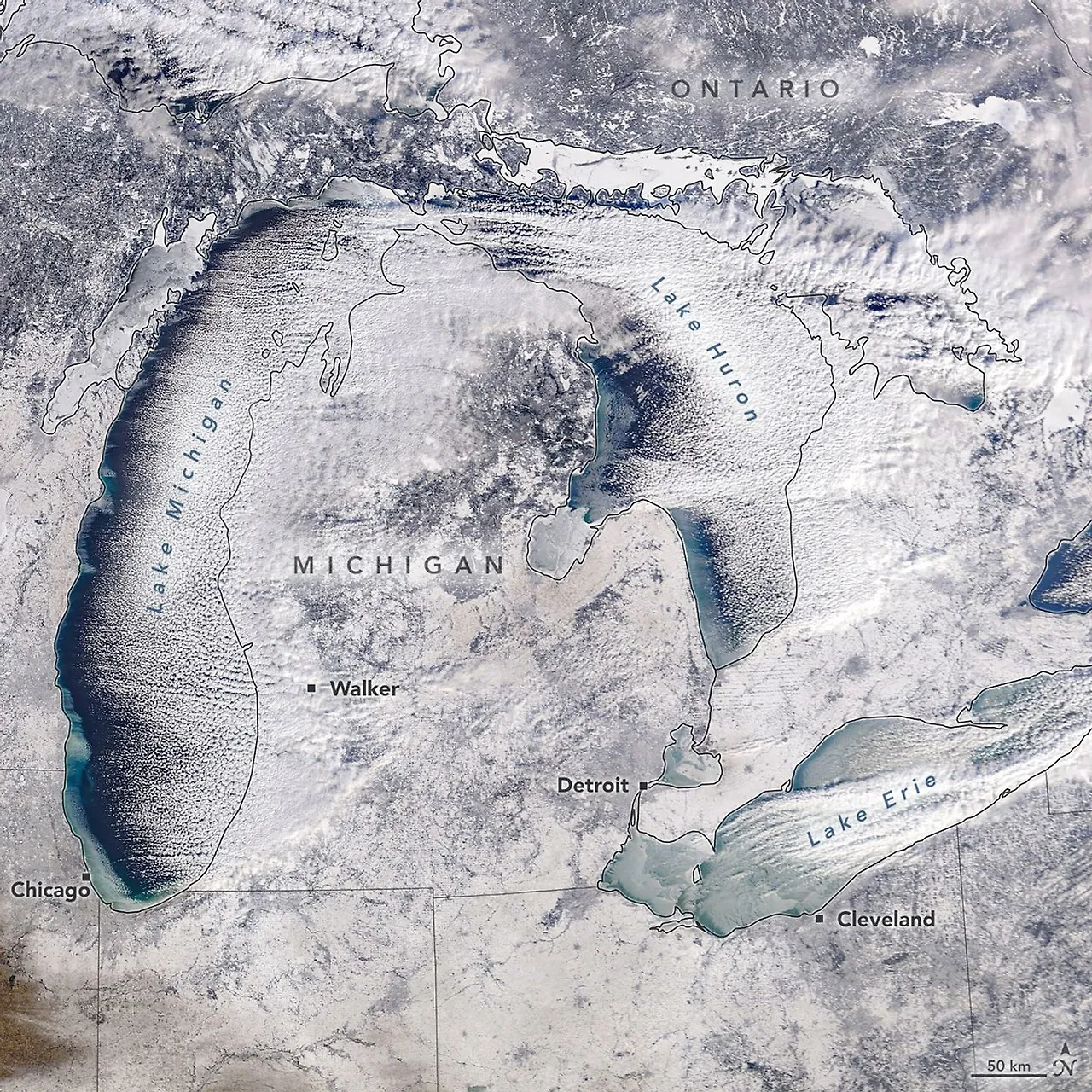 따뜻해진 바다는 대기 중으로 수증기를 더욱 공급합니다. 멕시코만과 대서양의 해수면 온도는 평년보다 높았으며, 이는 대기 중으로 막대한 양의 수증기를 공급했다. 이렇게 풍부해진 수증기가 북극발 냉기와 만나면서 과거보다 훨씬 많은 양의 눈과 얼음을 쏟아부었다.