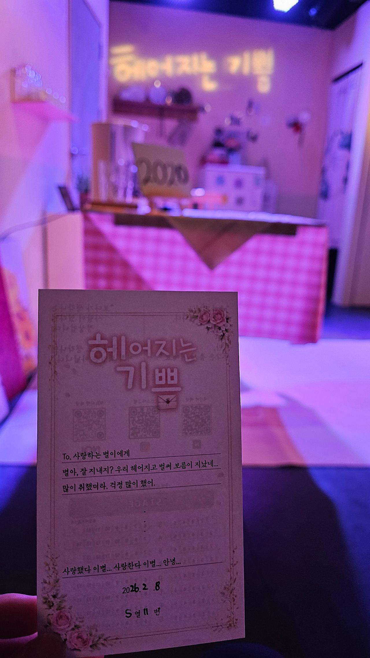 처음 이 연극을 봤을 때 "왜 헤어지는 게 기쁠까?", "영화 헤어질 결심과 비슷한 결이려나?" 등을 생각했는데 여성 주인공 이름이 안기쁨이었습니다. 기쁨이가 헤어지는 내용이라는 것을 알자마자 바로 헤어지길래 기분이 벙졌었습니다. 『이렇게 바로 헤어진 상태에서 연극이 시작된다고?』