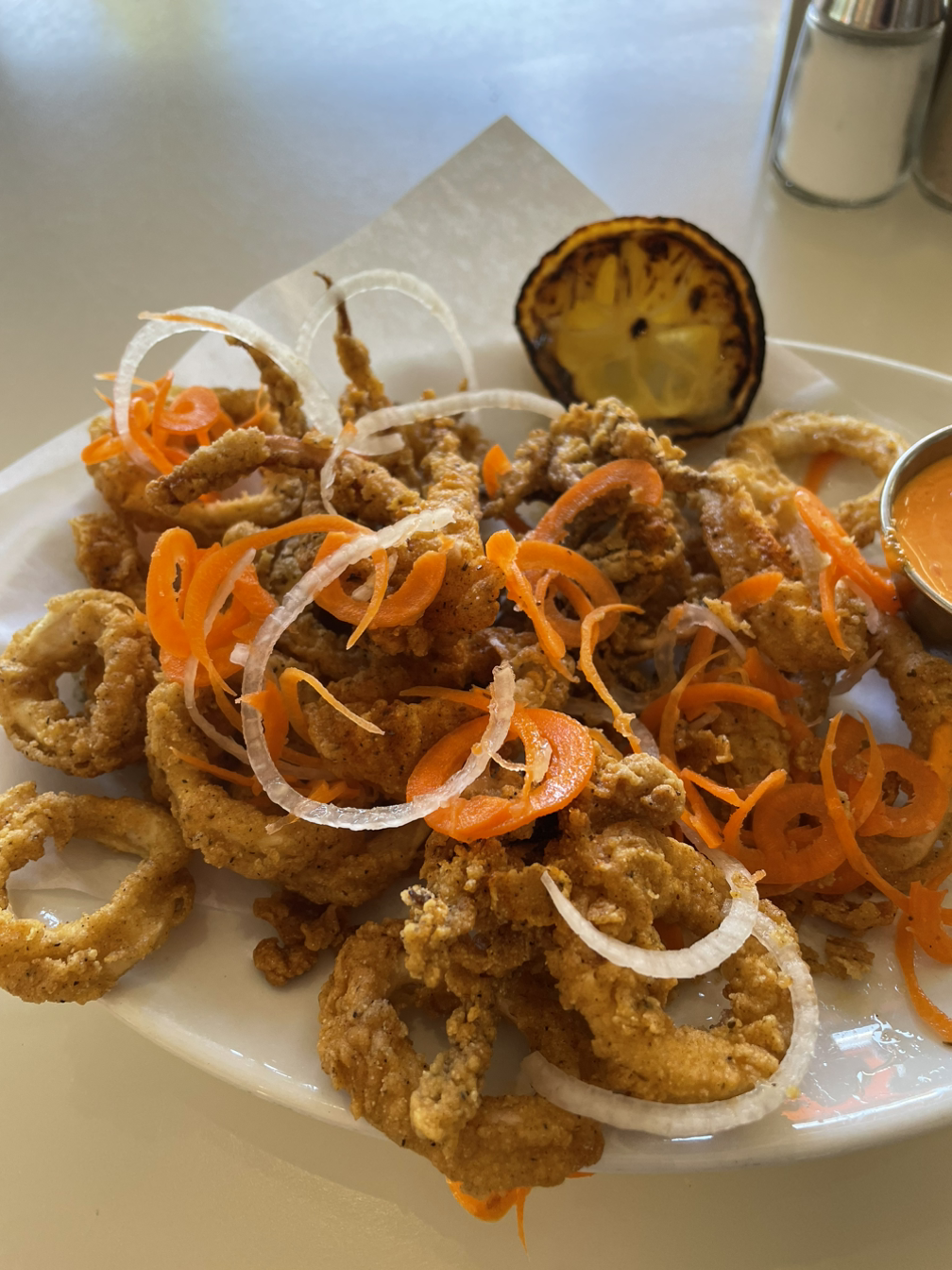 미국 와서 내 최애 메뉴이다. 사실상 오징어 튀김인데 미국 레스토랑에서는 크리스피 칼라마리라는 이름으로 비싸게 팔린다. 오징어 튀김 한 접시에 20불 넘게 지불했다. 하지만 크리스피 칼라마리를 먹으면서 참 기분이 좋았다. 6개월 동안 쉬지 않고 일만 했는데 주중에 근사한 레스토랑에서 내가 제일 좋아하는 음식을 먹을 수 있다는 이 사실이 감사했다. 그리고 돈이 참 좋구나. 돈을 많이 벌어야겠다고 생각했다.
