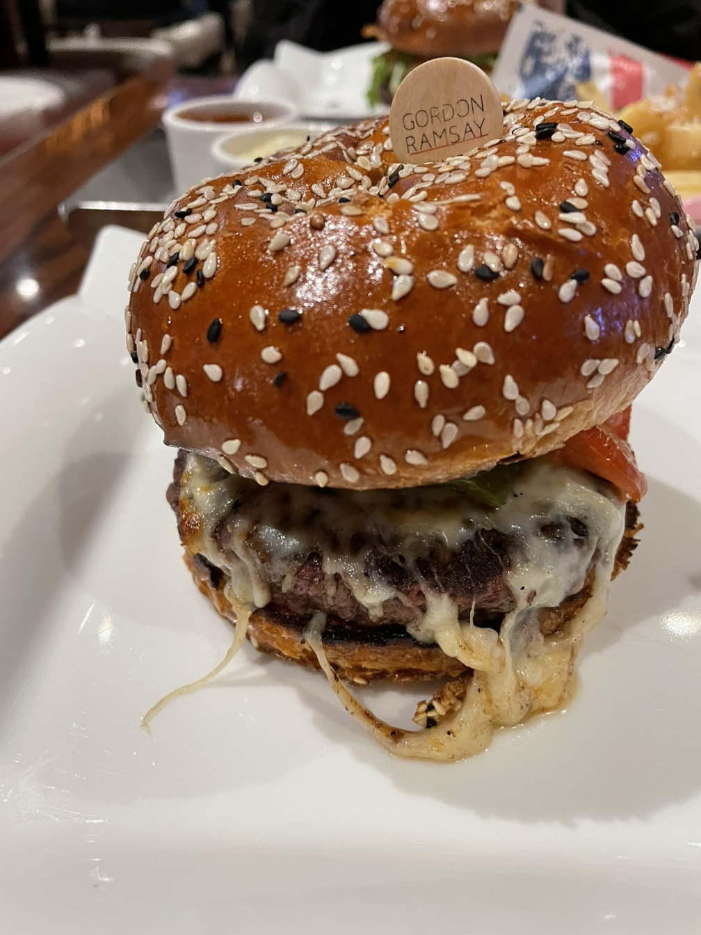 우리는 호텔 안에 있는 플라밍고랑 같이 사진 찍고 저녁 먹으러 고든램지 햄버거집에 갔다.