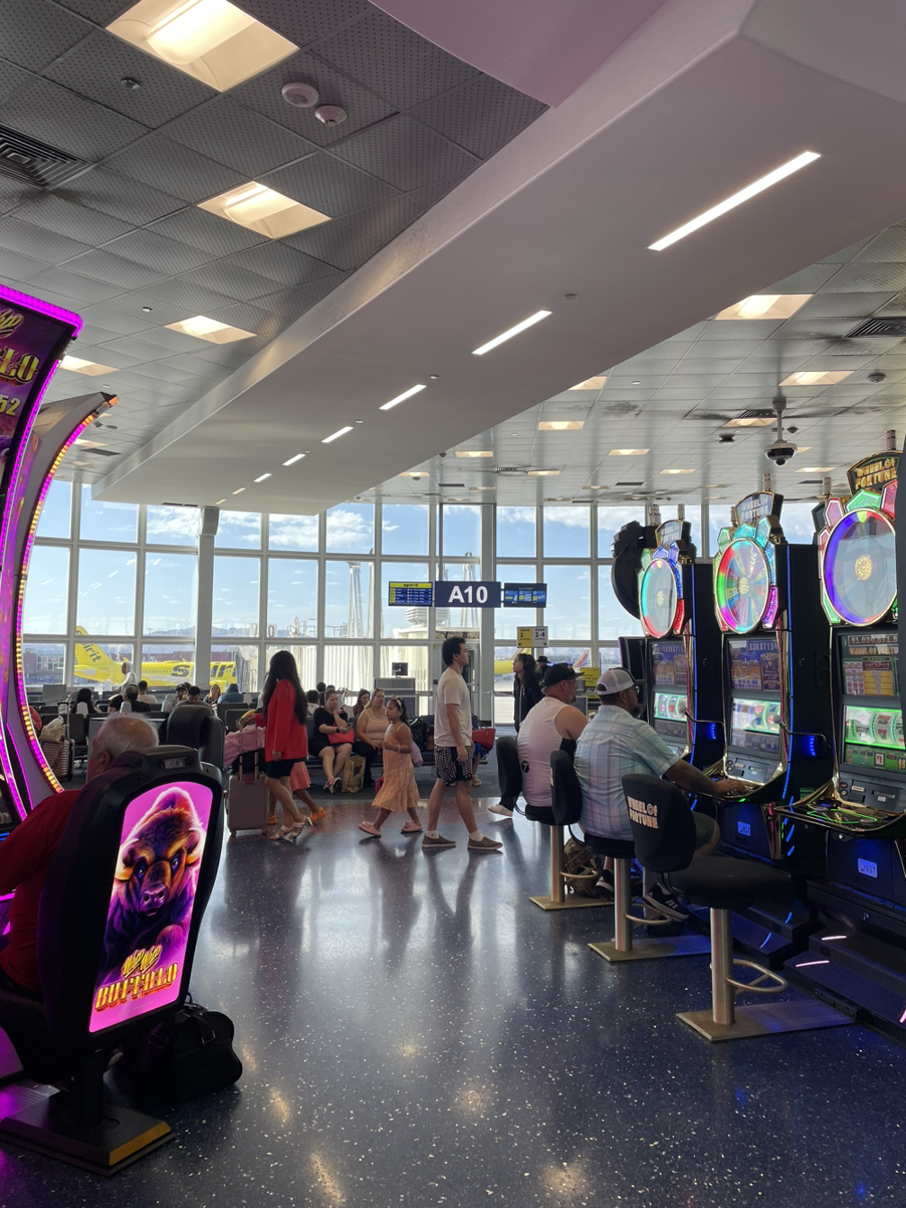 오전 7시 15분에 출발하는 항공편이라 나는 자리에 앉아서 이륙하자마자 거의 잠들었다. 두 번 정도 눈 뜨니까 라스베가스에 도착했다. 비행기에서 내리자마자 바로 카지노가 나왔다.