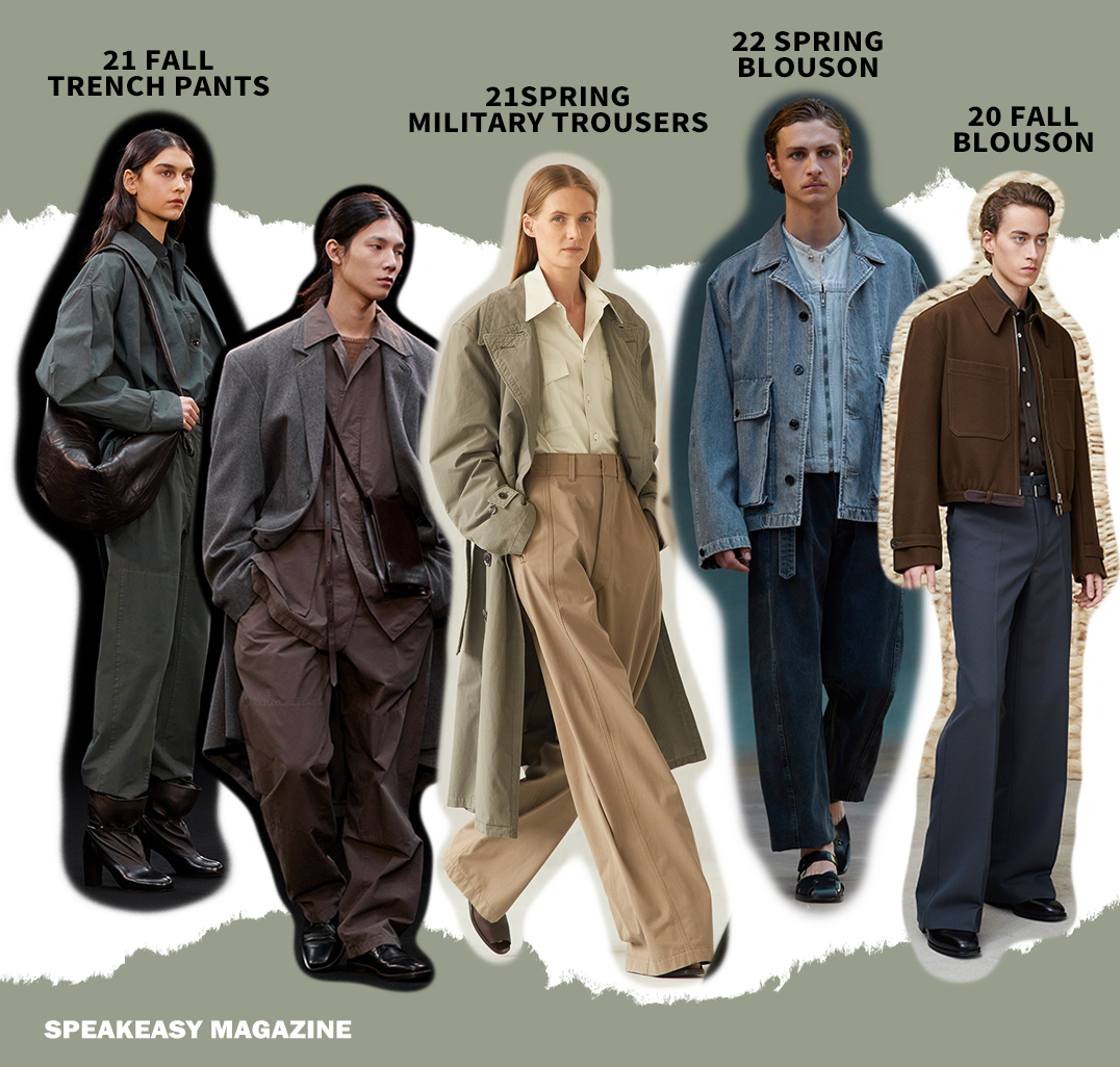 하지만 르메르를 빛나게 한 것은 비단 편안함뿐만이 아닙니다. 르메르의 일상성은 시공간을 초월합니다. 그들은 다양한 라이프스타일에서 포착한 실용성을 재해석하지요. 가령 유러피언 클래식, 빈티지, 밀리터리, 워크웨어, 동양 의복들은 지속적인 모티브입니다. 그리고 매 시즌 등장하는 플리츠 팬츠, 트위스티드 팬츠, 차이니즈 로퍼, 블루종, 트렌치코트에서 바로 이를 확인할 수 있죠.