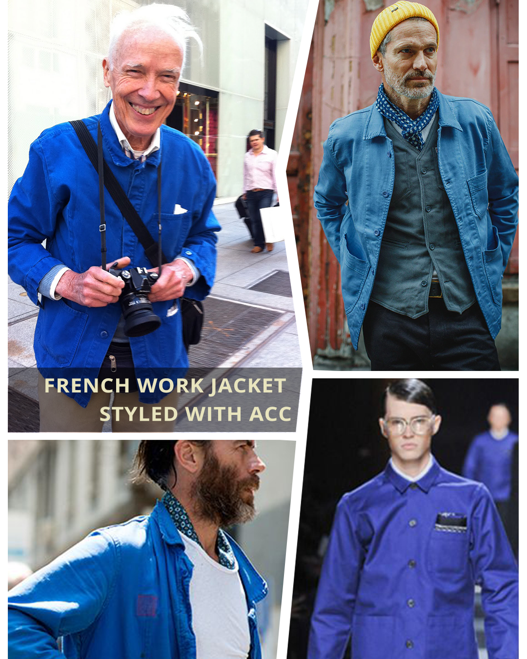 프렌치 워크 재킷은 기본적으로는 캐주얼하지만, 많은 근대 복식이 그렇듯 현대에서는 포멀 하게 해석되기도 합니다. 그래서 우리는 다양한 방식으로 프렌치 워크 재킷을 즐길 수 있습니다.