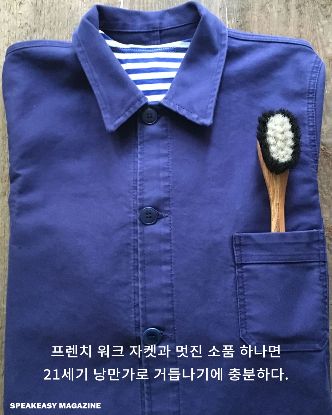 그런 이들에게 프렌치 워크 재킷은 훌륭한 선택지입니다. 캐주얼하면서도, 앞서 이야기한 워크웨어 특유의 카리스마를 잃지 않았습니다. 아우터의 선택지가 좁은 남성복 영역에서, 색다른 멋을 추구할 수 있습니다. 도련님 같은 블레이저 재킷과 카디건이 질린다면 프렌치 워크 재킷의 담백한 카리스마를 즐길 시간입니다.