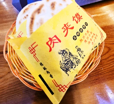 겉은 딱 중국식 호떡 같이 생겼다. 그리고 그 빵을 반으로 쪼개서 안에다가 고기를 넣었다.