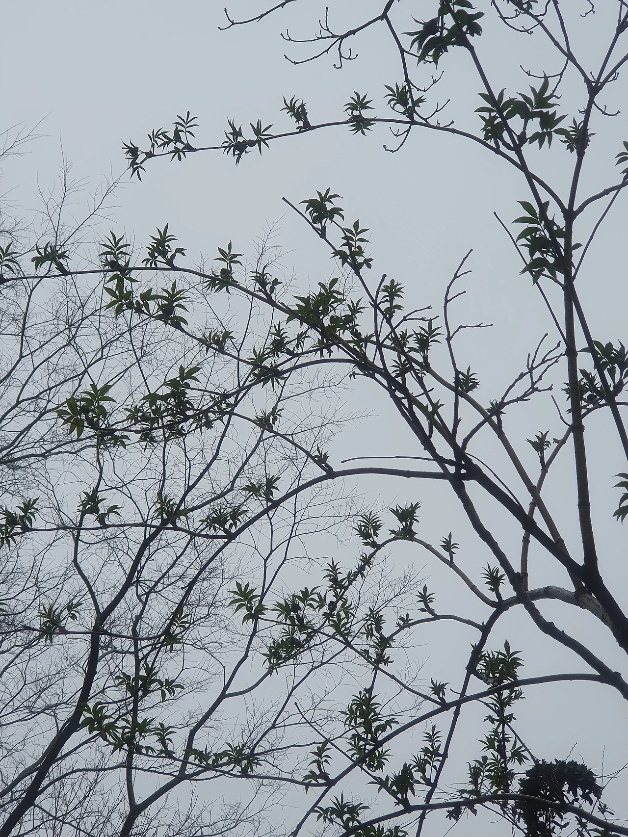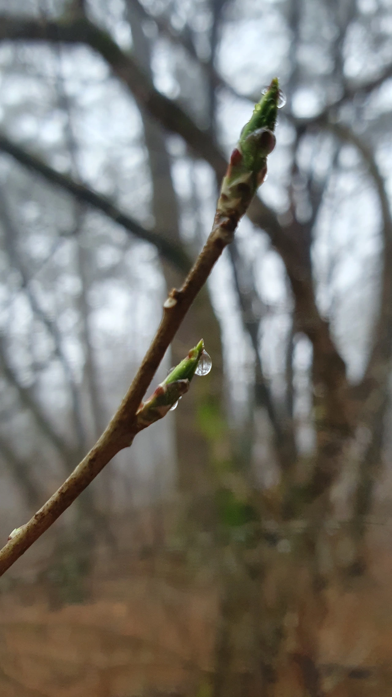 나무는 가지마다 뾰족한여린 치맛자락을 펼치며 빗 속 봄의 왈츠를 즐긴다. 나무의 겨울눈이 깨어나는 봄은 경이롭다.