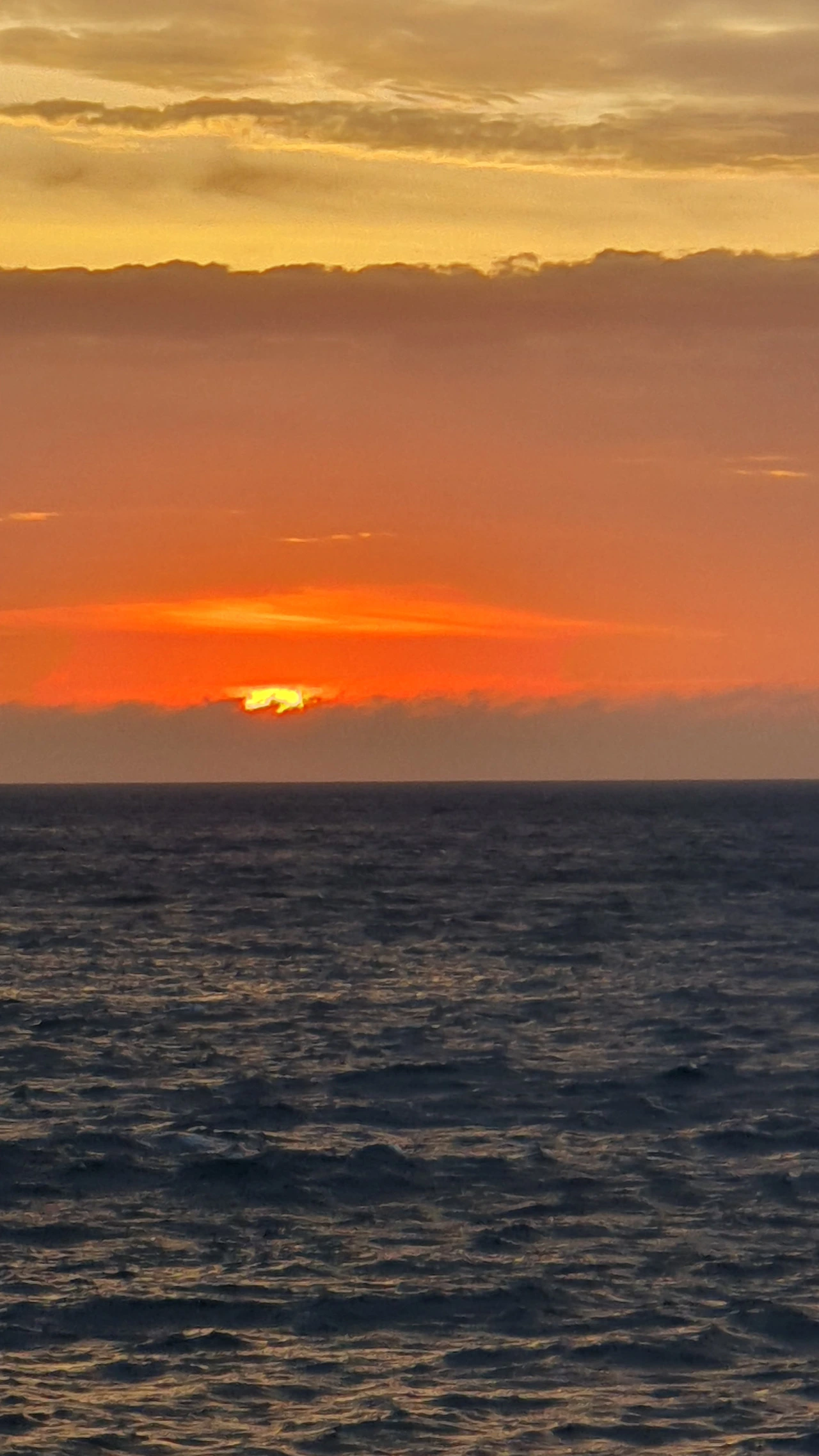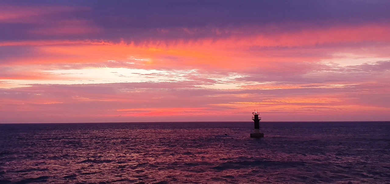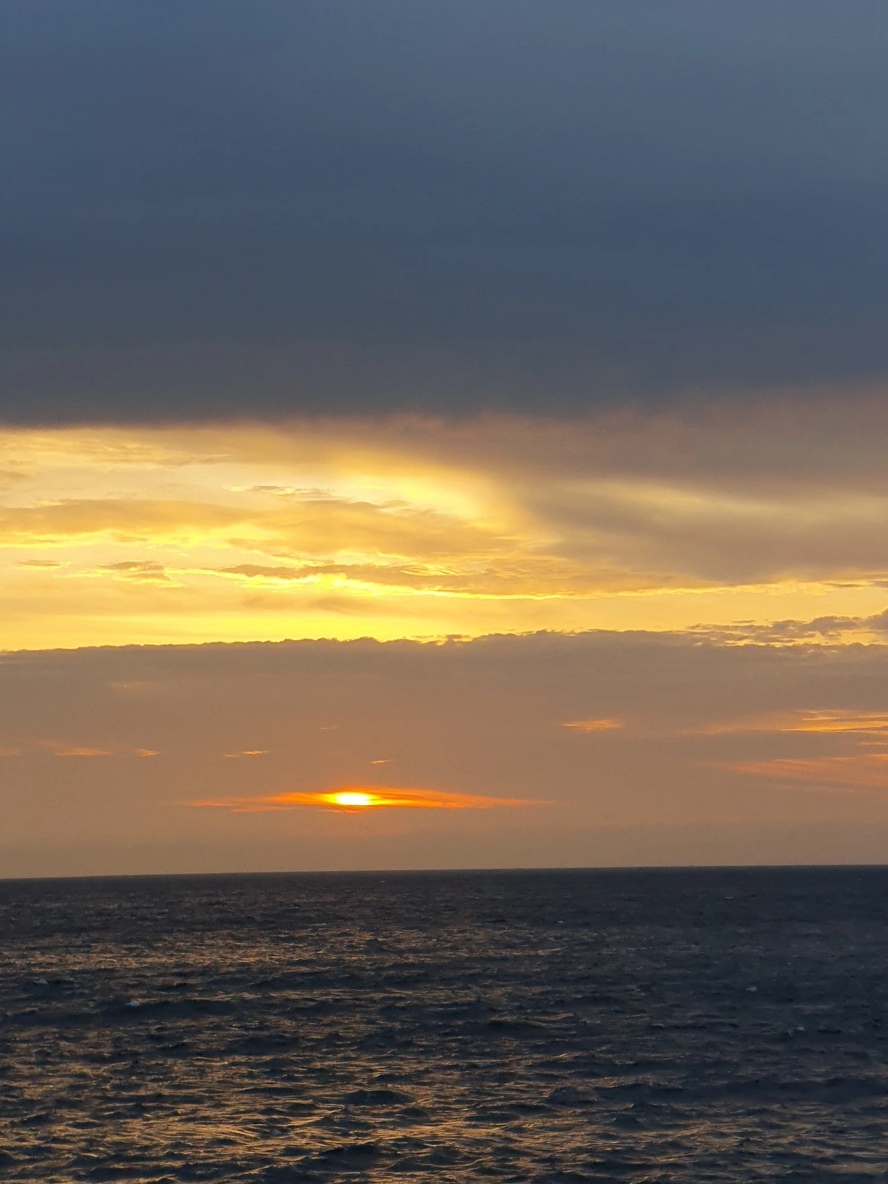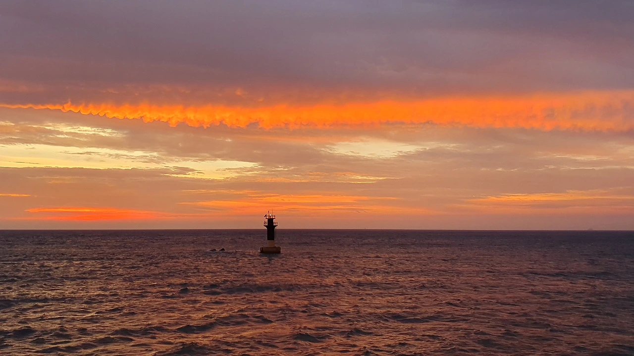 해가 완전히 수평선을 넘어가고 기적처럼 수평선 위 구름 너머로 오로라 같은 보랏빛이 눈앞에 펼쳐졌다. 붉은빛이 스프링을 타고 전류가 흐르듯 더 넓게 번
