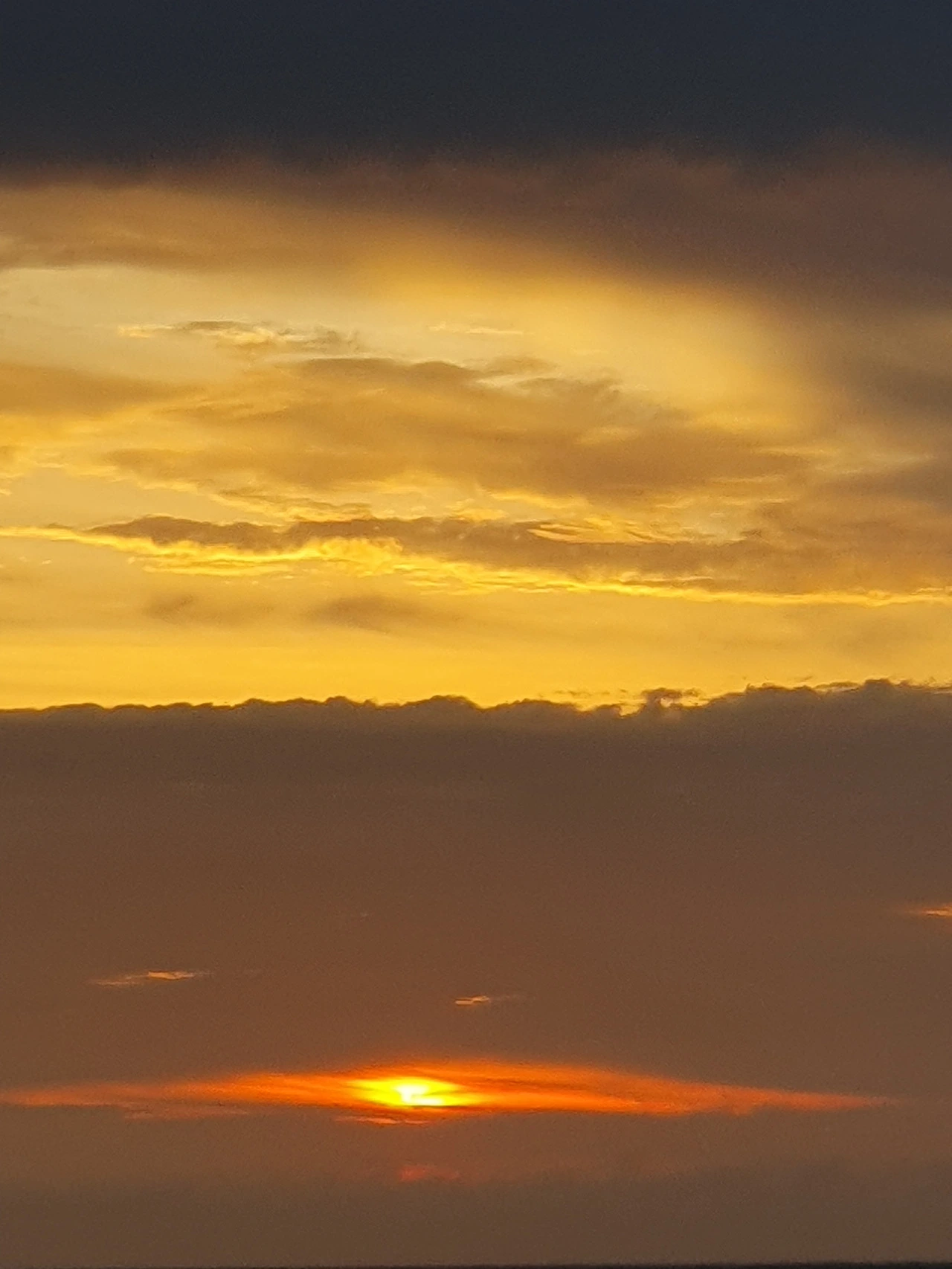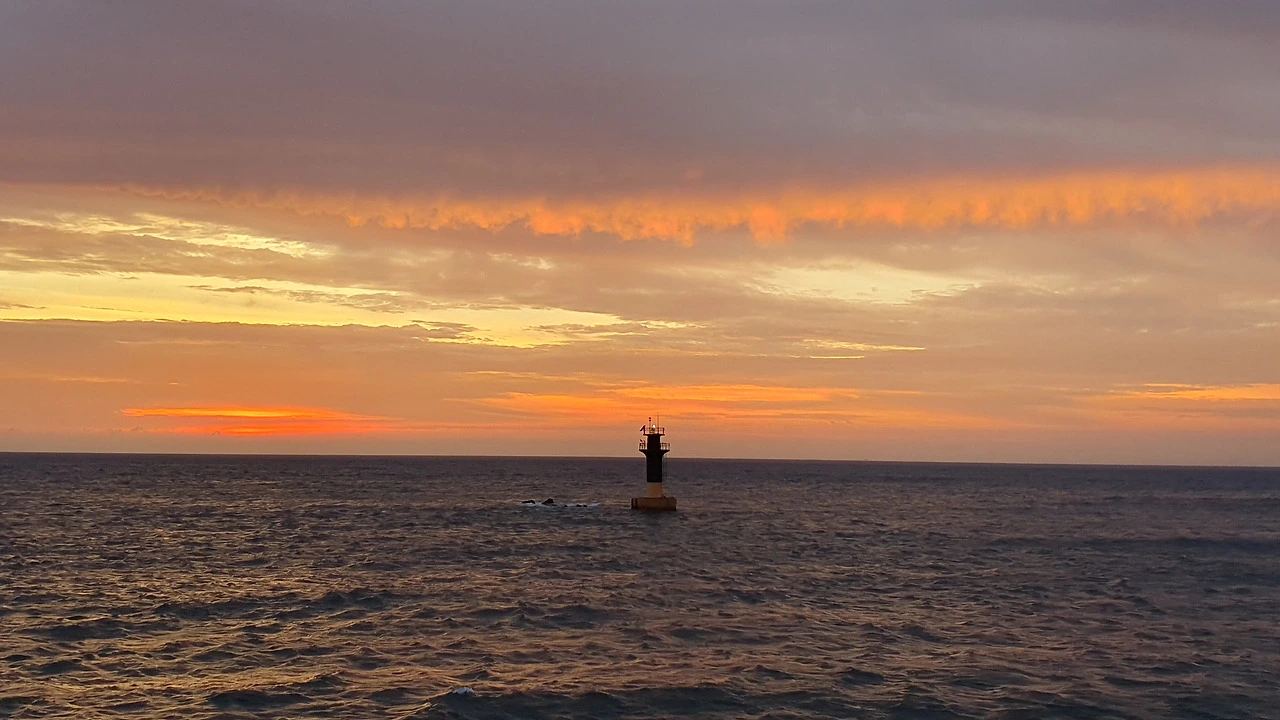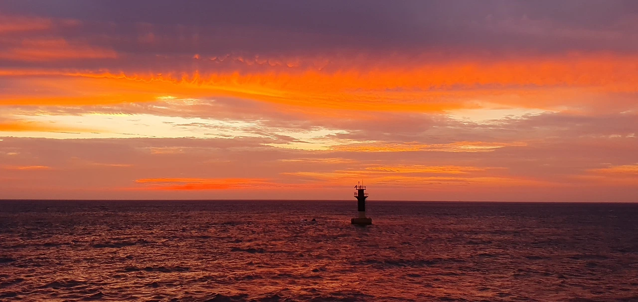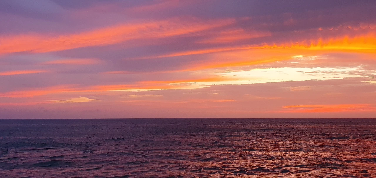 해가 완전히 수평선을 넘어가고 기적처럼 수평선 위 구름 너머로 오로라 같은 보랏빛이 눈앞에 펼쳐졌다. 붉은빛이 스프링을 타고 전류가 흐르듯 더 넓게 번