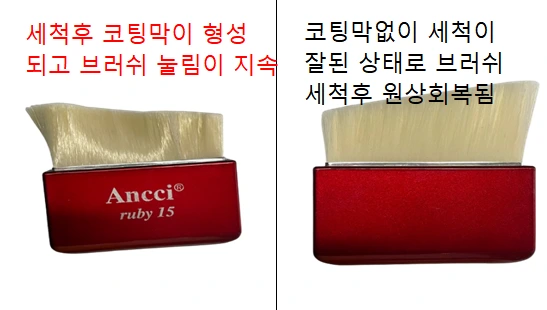 세척 후에 브러쉬 모질에 반질 거림이 있고