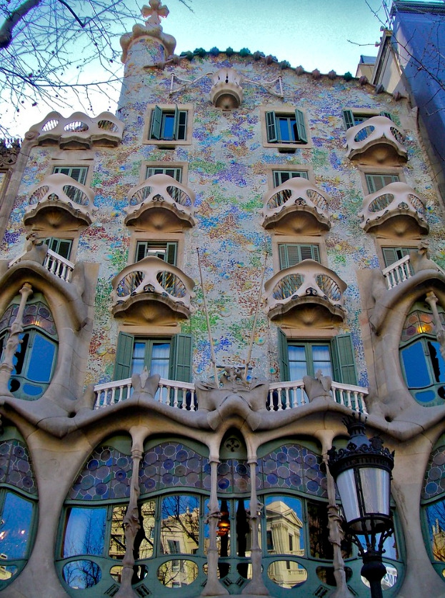 가우디의 주요 작품들로는 그라시아 거리에 위치한 카사바트요가 있다. 조셉 바트요가 그라시아 거리에 위치한 자신의 저택을 철거하고 새롭게 거리에서 가장 화려한 건물로 만들어 달라고 가우디에게 요청했으나 가우디는 철거 대신 전면 복원 방식을 제안해서 건물을 철거하지 않고, 피사드의 변경, 내부 구조의 재배치, 빛 침투 확장 등을 통해 건물 전체를 마치 새로운 건물처럼 만들어 냈다. 카사 바트요는 가우디의 자유로운 창의성이 잘 표현된 작품으로 바다, 인체, 자연 등을 형상화 하였다.