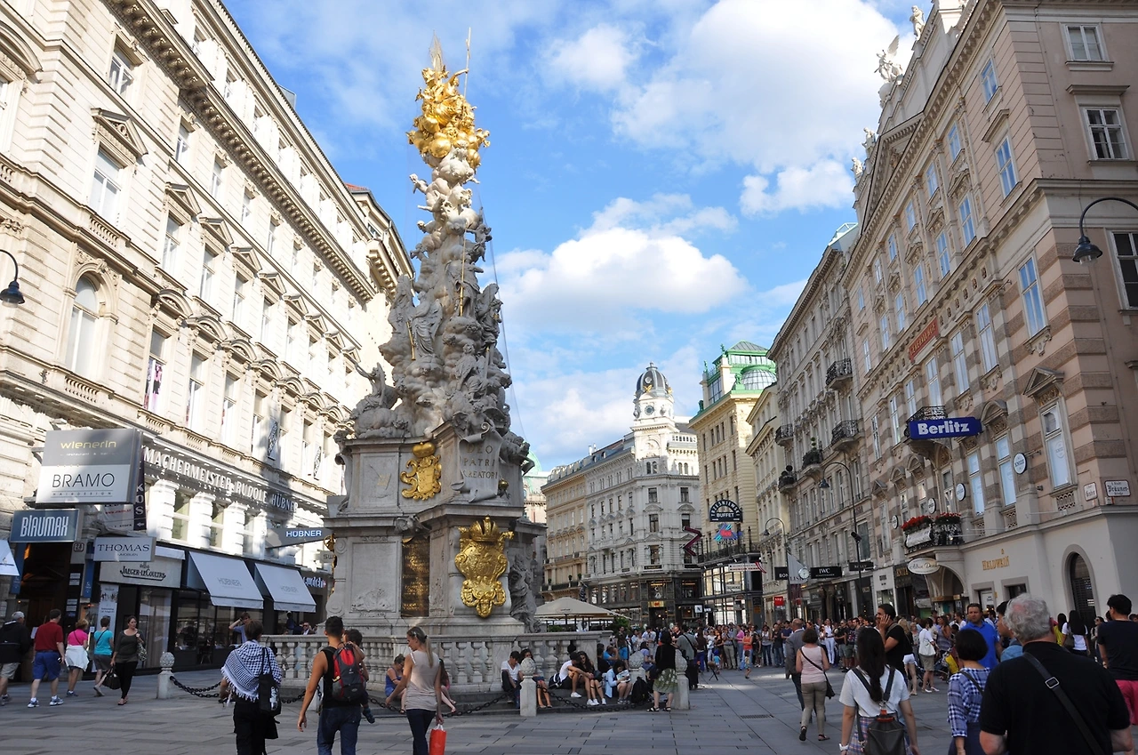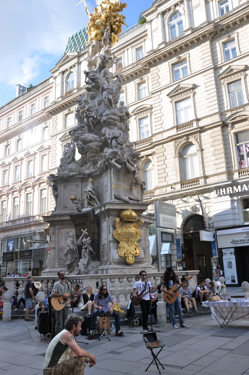 우리는 링의 중앙부에 있는 성 슈테판 성당을 비엔나 여행의 기점으로 삼아서 성 슈테판 광장에서 출발해서 제일 먼저 비엔나의 번화가인 그라벤 거리를 둘러 보았다. 길 한복판에 흑사병으로 사망한 10만 명의 넋을 달래는 페스트 탑이 있다. 탑 주변으로 거리의 악사들이 추모 성격의 페스트 탑과는 무관한 연주를 하고 있었고, 탑 주변의 계단 턱에 걸터앉아 한가롭게 음악 감상을 하고 있는 시민들의 모습이 편안해 보였다.