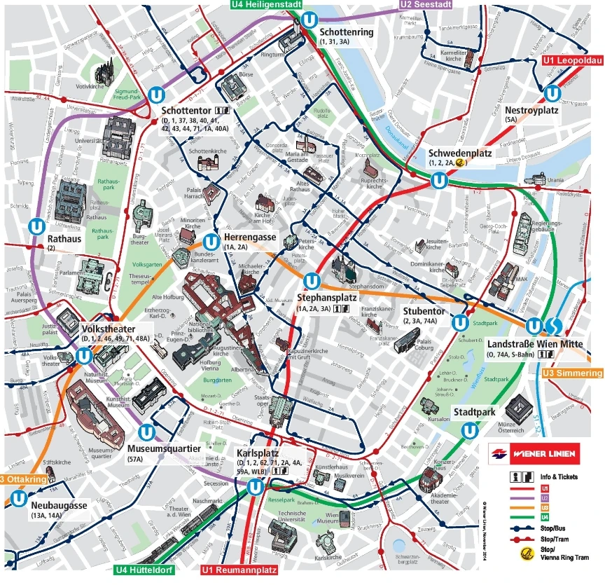 직접 구경하려는 명소들은 크게 링과 링 밖의 외곽지역으로 구분되지만 링 지역은 도보로 이동이 가능하고 그 외의 명소들도 링을 따라 트램을 타고 다니면서 쉽게 찾아 볼 수 있다.