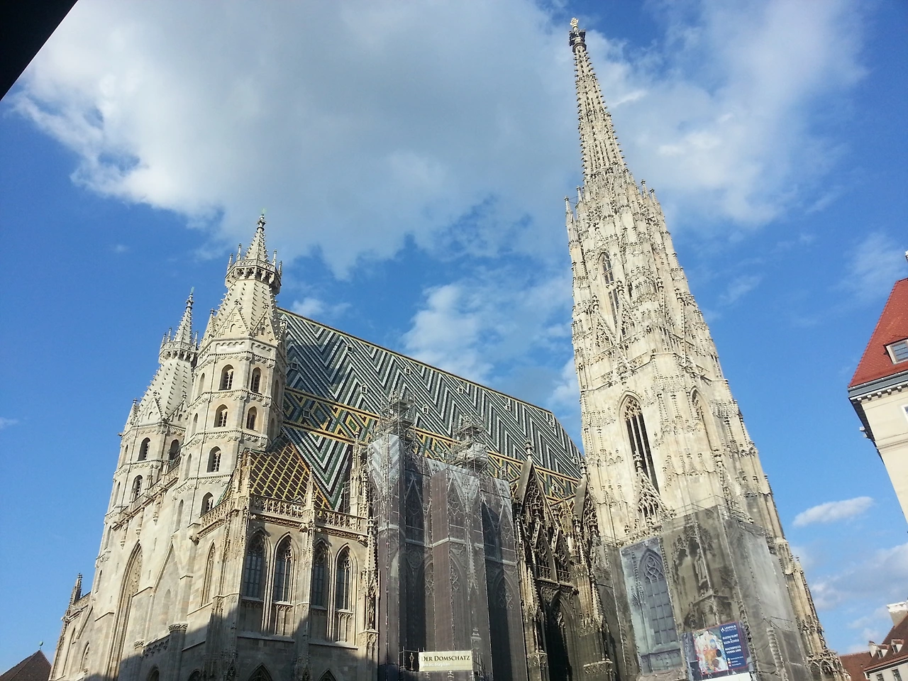성 쉬테판 성당은 화려한 모자이크 문양의 지붕과 고딕식 첨탑이 우뚝 솟아 있어서 비엔나의 상징이면서 이방인 여행자들에게는 이정표 같은 역할을 하고 있다.
