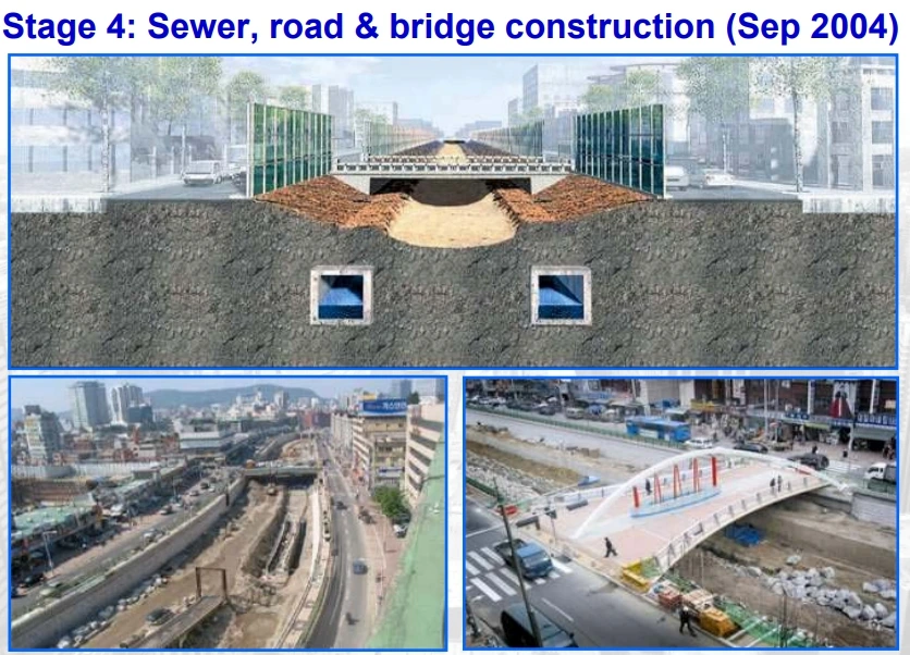 복원 과정에서는 복개 구조물의 안정적 철거, 인공 수로 설계, 수질 관리, 하천 생태계 조성, 시민 접근성 확보 등 다양한 기술이 적용되었음을 간접적으로나마 청계천 복원 작업 보고서를 보고 알게 되었다.