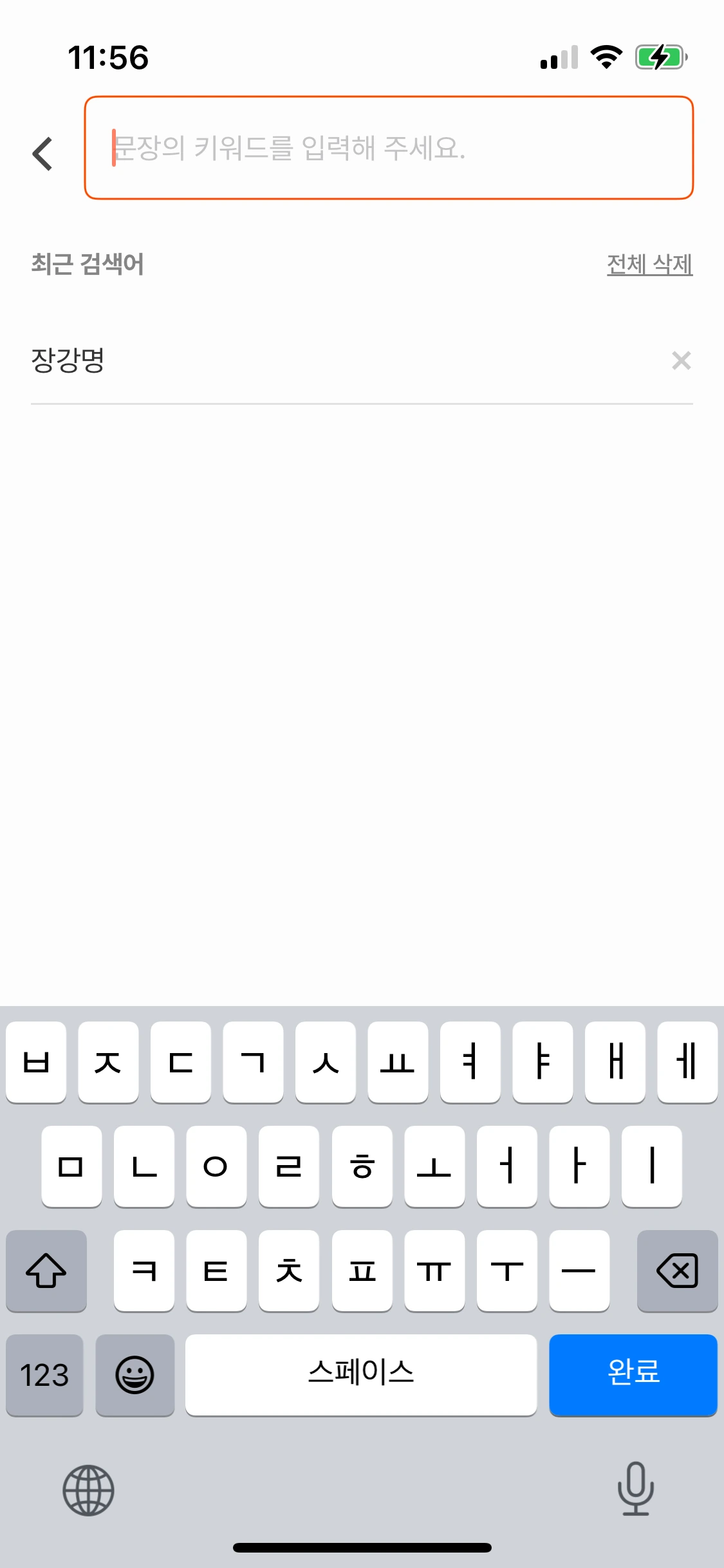 비어있는 앱 느낌을 줄이기 위해서는 검색 결과가 없을 때 "장강명" 관련 첫 문장을 작성해 보시겠어요?라고 유도해 보는 것은 어떨까 싶기도 하고....ㅎㅎ