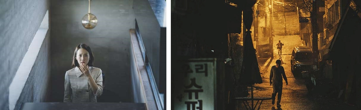 다음으로는 영화 기생충이다. 기생충에서는 계단이 많은 이야기를 이끌어 나가는 요소와 무대로 작용한다. 계단을 오르며 가정부가 피 토하는 모습을 보는 장면, 가정부가 다시 집으로 돌아와 계단을 통해 지하로 내려가 남편을 만나는 장면들은 계단을 통한 무대의 등장으로 그 효과를 더하고 있다. 이후 계단을 굴러 내려와 가정부가 죽는 장면부터 폭우 속 계단을 내려와 물에 잠긴 집으로 가는 장면 속에서는 제물로 바쳐진 후 꺼져가는 심장이 계단 아래로 굴러 떨어지는 것처럼 계단을 통과하며 파괴되는 생명과 삶을 보여준다.