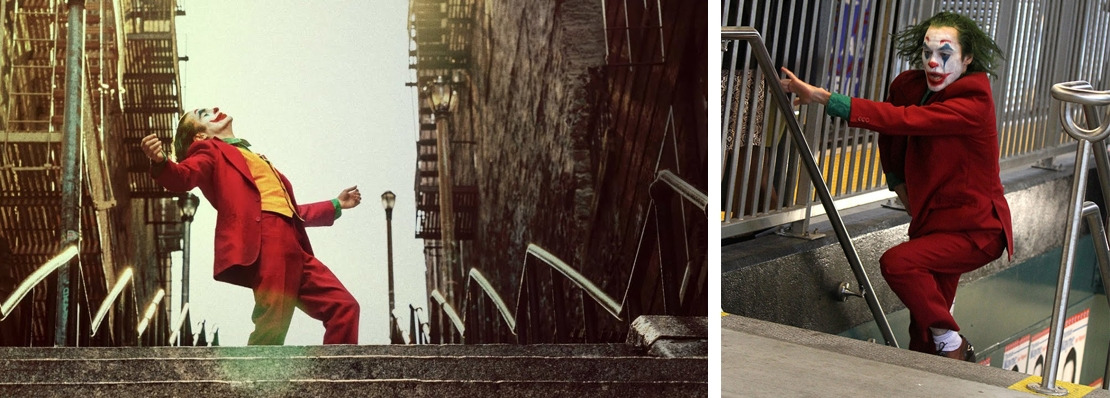 영화 조커의 대표적인 장면인 계단 위에서 춤을 추는 장면은 이러한 제의적 의미로 파악해 볼 수 있다. 과거처럼 심장을 꺼내 물리적인 죽음은 아니지만, 척박한 사회 속에서 사회적으로 죽임을 당한 아써(Arthur)는 누군가의 웃음거리로 제물처럼 바쳐지고, 이후 제단(계단) 위에서 의식(춤)을 통해 아써(Arthur)는 스스로 조커로 다시 태어난다. 이 외에도, 극단에서 해고당하며 계단을 내려가며 낙서를 하는 조커, 지하철에서 금융가 사람들을 죽이고 계단을 올라 도망가 춤을 추는 조커, 그리고 경찰들을 혼란 속에서 따돌리며 마스크를 버리고 계단을 올라가는 조커 등 이 영화에서는 아써(Arthur)가 조커로 변하는 순간에 변환점의 무대로 계단을 적극적으로 사용하고 있다.