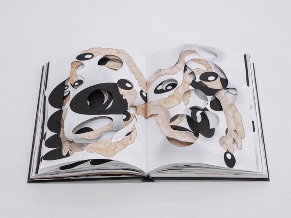 종이에 새겨진 부드러운 칼질은 다음 장을 시작하는 기본값이 됩니다. 이 칼질을 따라 새로운 선이 생기고 색칠하면 기존 면을 이어가는 또 다른 면이 나오는데요. 꼬리에 꼬리를 무는 작업이 끝없이 엮어진 이 책은 미국에 거주하는 최상아 작가의 드로잉 북입니다. 동화책에서 흔한 "팝업북"의 형태로 2년간 만들어진 이 작품은 인체 내부나 인간 내면을 펼친듯한 이미지, 과거와 현재, 미래를 관통해 유기적으로 연결되는 형태를 띄고 있으며 이 과정에서 드로잉은 하나의 입체작품처럼 구현됩니다.