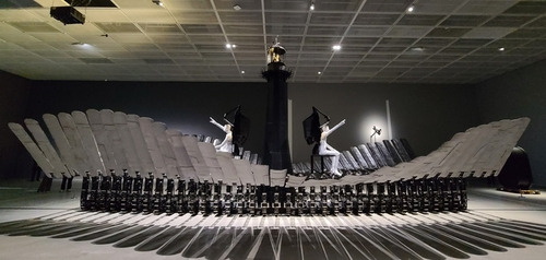 전시는 오늘날의 초상(서울박스) -> 모순된 욕망의 춤과 출구 모색(5전시실) -> 항해의 설계(복도)의 여정으로 전개되는데요. 방향 상실의 시대라는 격랑을 헤쳐 나가는 우리모습을 투명하게 바라보고 위로를 건네며, 진정한 공생을 위해 자신만의 항해를 설계하고 나아가기를 바라며 응원하는 작가의 진심을 담았습니다. 특히나 폐종이박스, 지푸라기, 방호복 천, 폐자동차 부품 등 일상의 흔한 소재에 최첨단 기술을 융합했는데 이는 삶의 조화와 균형에 대한 희망을 내포합니다.
