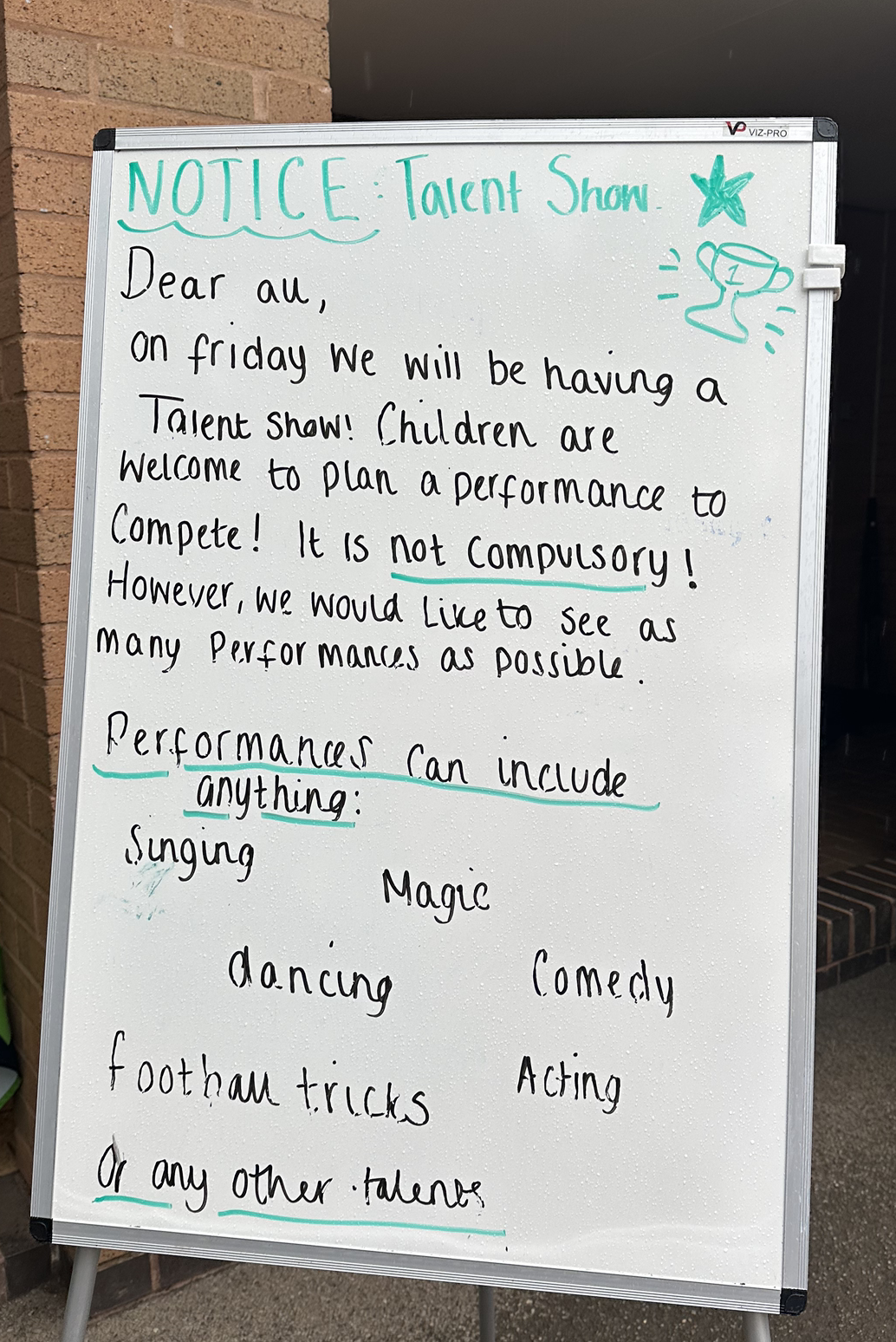 “근데, 오늘 보드에 보니까 내일 뭐 한다고 쓰여있네?”