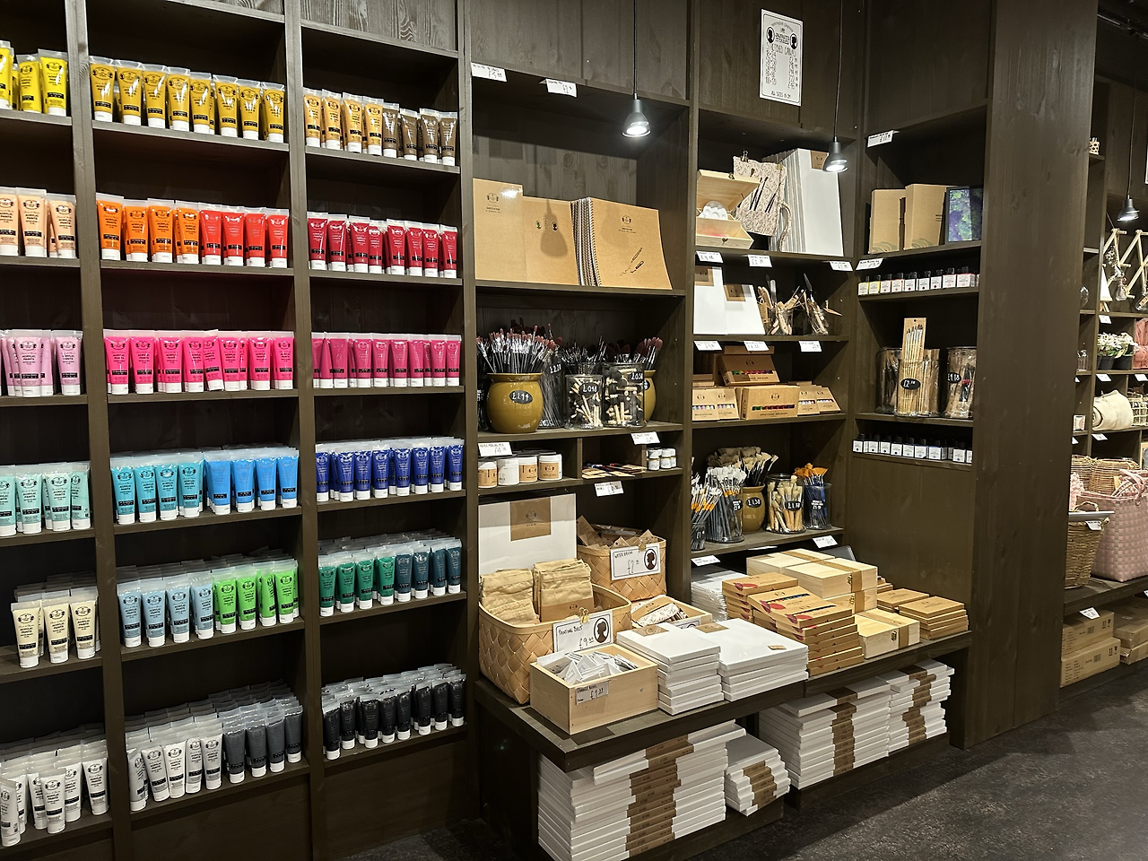 북유럽 감성의 너무 예쁜 소품들과, 화구재료들…… 색깔별로 진열해 놓으니 그 자체로도 작품이었다. 한참을 이것저것 구경했다. 구경하다 결국 예쁜 에코백 하나를 구입했다. 여기는 꼭 이곳에 머무는 동안 다시 와야겠다.