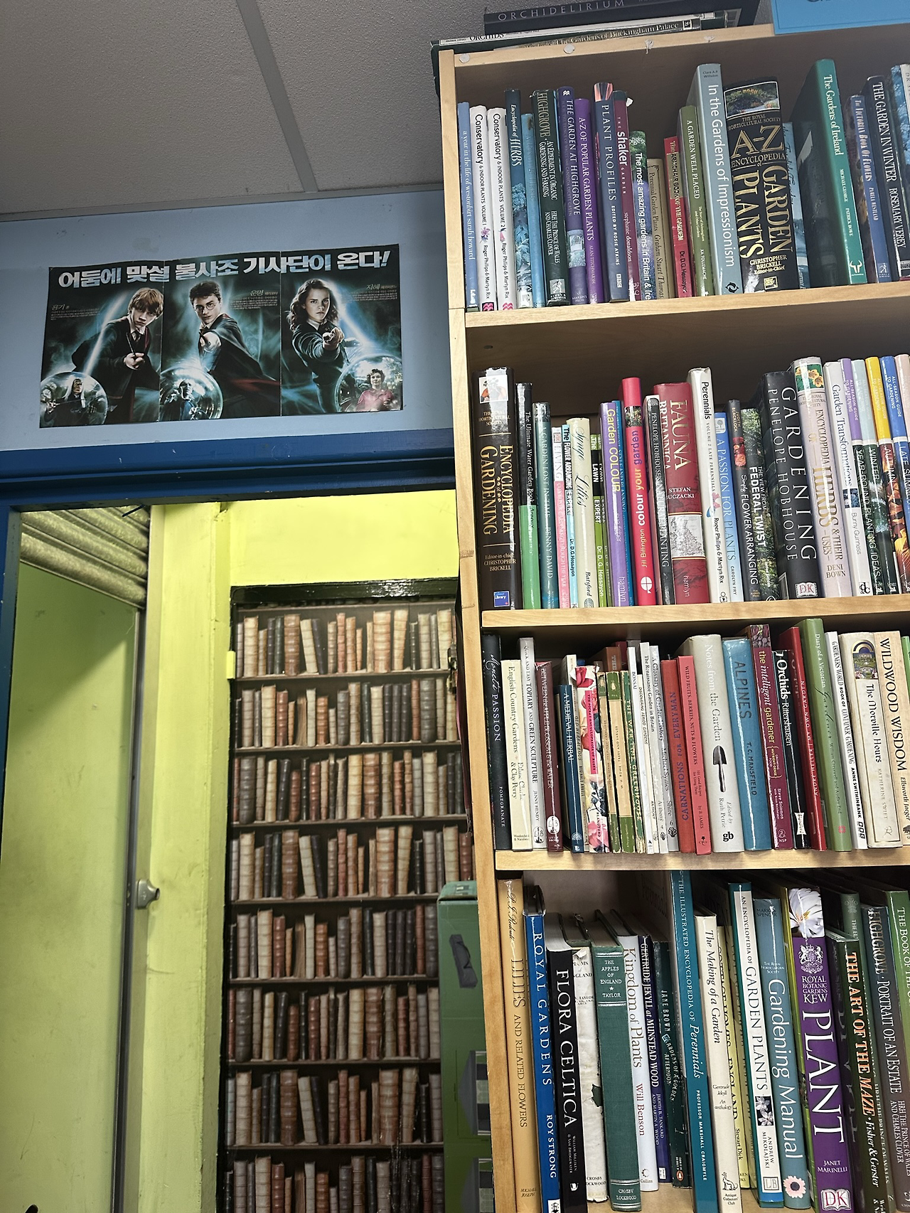 중고 책들이 빼곡히 쌓여있는 작은 서점 한편에 한국어로 된 해리포터 포스터가 보였다. 뭘까? 사장님이 한국인은 아닐 것 같은데…… 코너마다 책들을 살피고, 책 상태가 그다지 좋지 않은 것도 많았지만, 저마다의 책들이 주인을 기다리고 있었다. 그중 아트 코너에서 작은 수채화 기법에 관한 책을 들었다. 나도 한때는 수채화로 주로 작업을 했지만, 내가 늘 쓰던 기법 외에도 다양한 기법이 소개되어 있었다. 책도 작고 저렴해 얼른 구입을 했다.