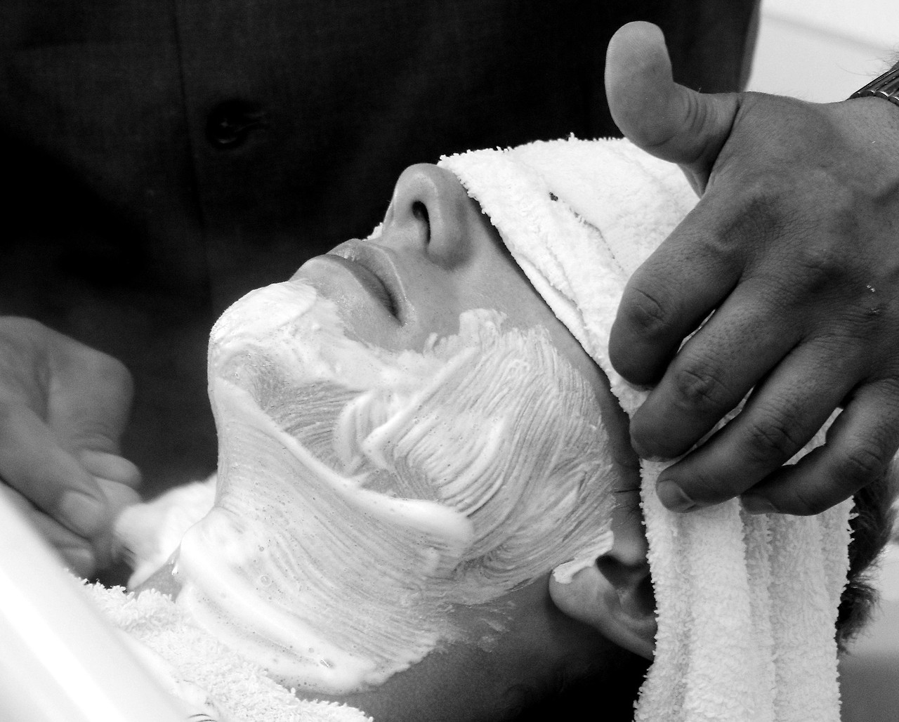 다이얼 비누 거품 묻힌 붓이 밑그림을 그리면