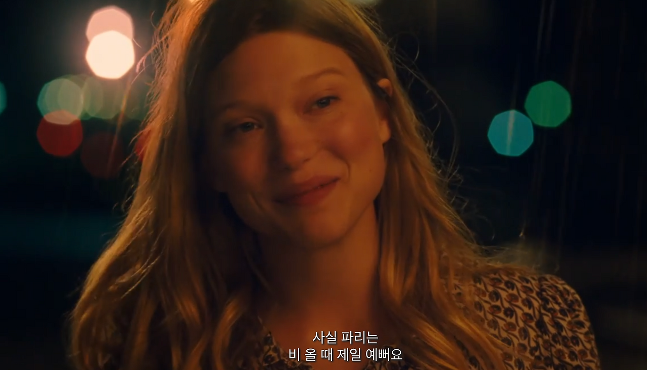 마지막으로, 길은 자신이 진정으로 무엇을 원하는지 깨닫는다. 낭만적인 상상에 빠진 자신을 비롯해, 누구라도 가끔은 과거에 집착하며 현실을 외면하기 마련이라는 사실을 그는 경험을 통해 배웠을 것이다. 이제 그는 더 이상 과거로 향하는 자동차가 오기를 기다리지 않는다. 현실로 돌아온 길은 이네즈에게 이별을 고하며 파리에 남기로 결심하다. 그리고 현재에 만난 새로운 인연과 함께 그토록 사랑하는 파리의 비를 함께 맞으며 영화는 끝을 맞이한다. 나의 시선에서 빗물이 그들의 어깨를 적실수록, 그 장면은 더욱 아름답게 빛나고 있었다.