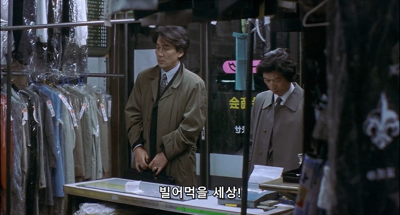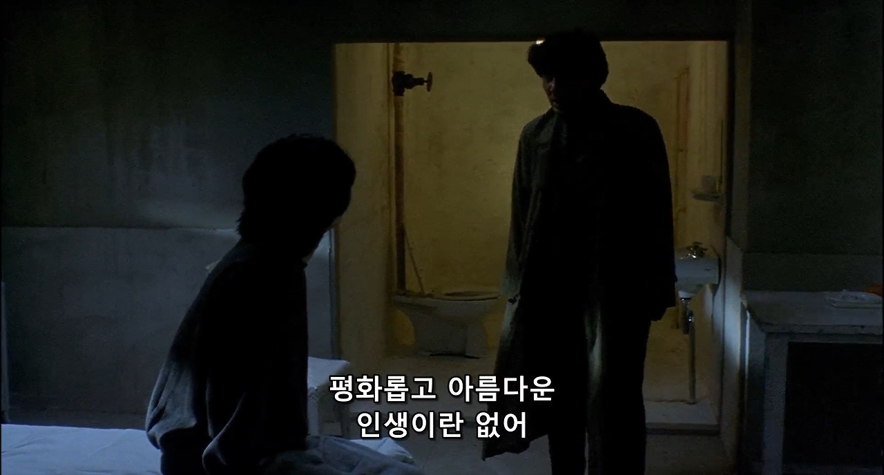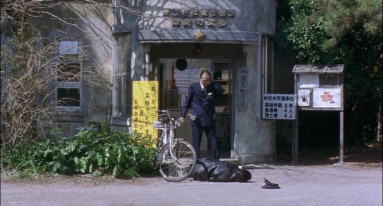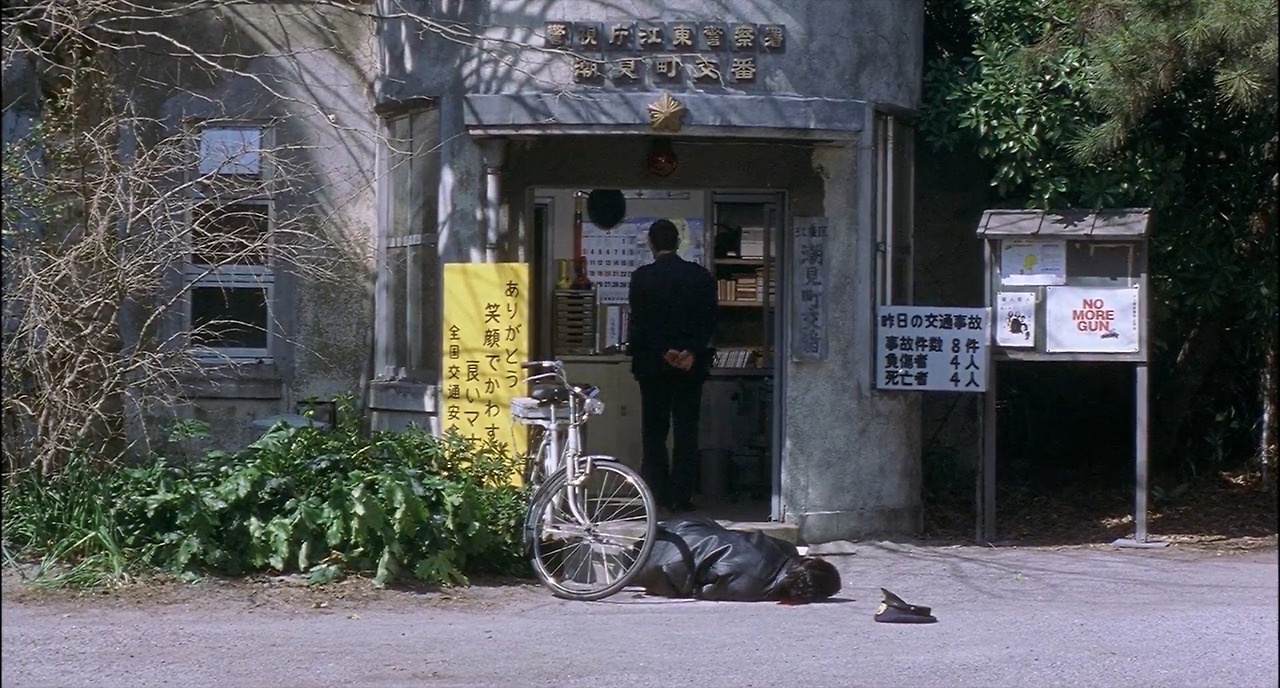 따스한 햇빛이 쏟아지고 참새들이 지저귀는 평화로운 경찰서 앞에서 배우 덴덴은 아무런 망설임도 없이 동료를 살해한다. 그의 얼굴에는 분노의 흔적조차 찾아볼 수 없다. 오히려 햇빛 속에서 그의 표정은 평온하고 고요하다. 이 따스한 평온함에서 나는 역설적으로 가장 조용하고 서늘한 공포를 느낄 수 밖에 없었다
