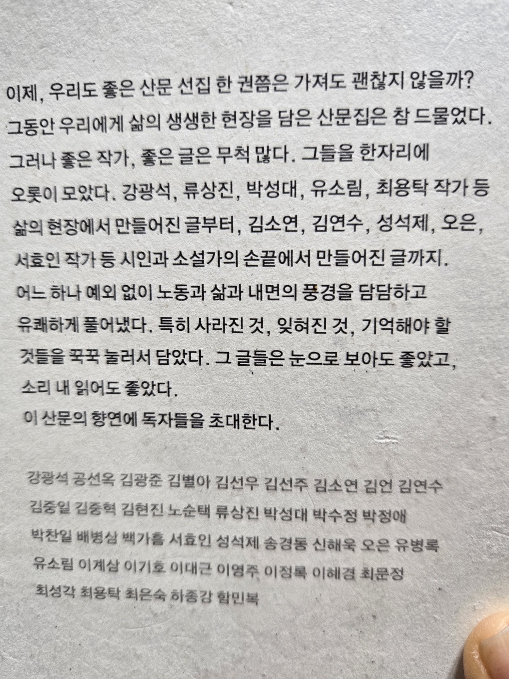 이제, 우리도 좋은 산문 선집 한 권쯤은 가져도 괜찮지 않을까?