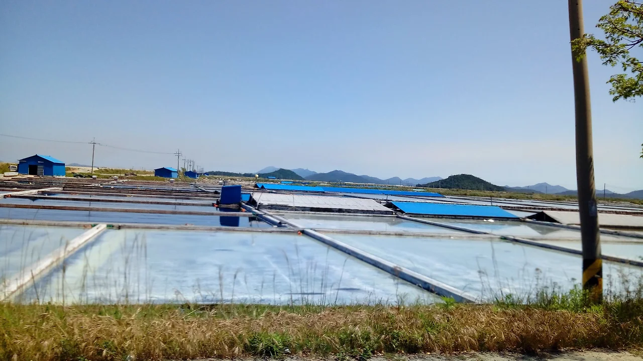 한 군데라도 더 볼 욕심에 씻지도 못하고 다시 명당리로 향했다. 산모롱이를 돌자 드넓은 소금밭이다. 도초는 천일염 생산지로도 유명하다. 염부들은 여름 철 짧은 시간에 만들어진 소금을 달다고 표현한다. 그만큼 맛있다는 말이다. 염전에서는 희고 깨끗한 소금 꽃이 피어나고, 폐염전 양식장에서는 분수와 함께 새우들의 수중 발레가 한창이다. 느긋하게 해찰하다 뱃 시간이 다 되어 선착장으로 급히 차를 몰았다.